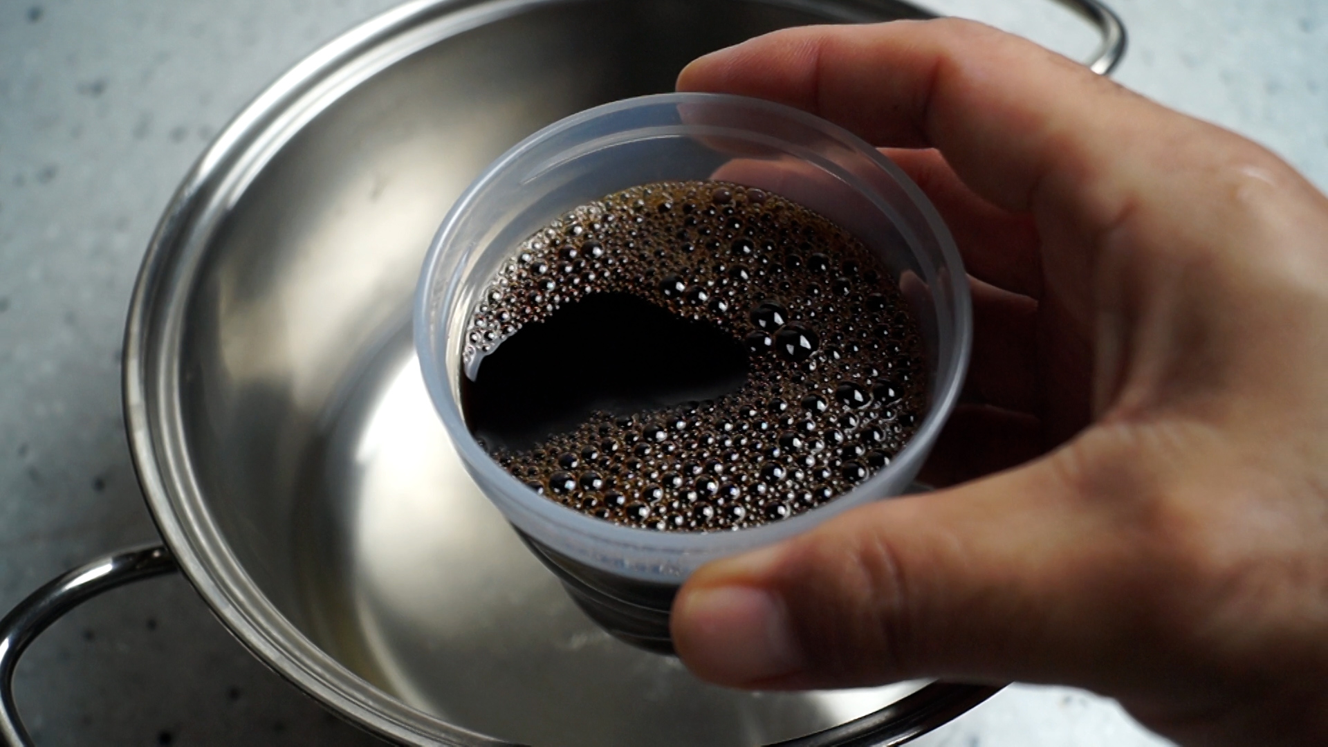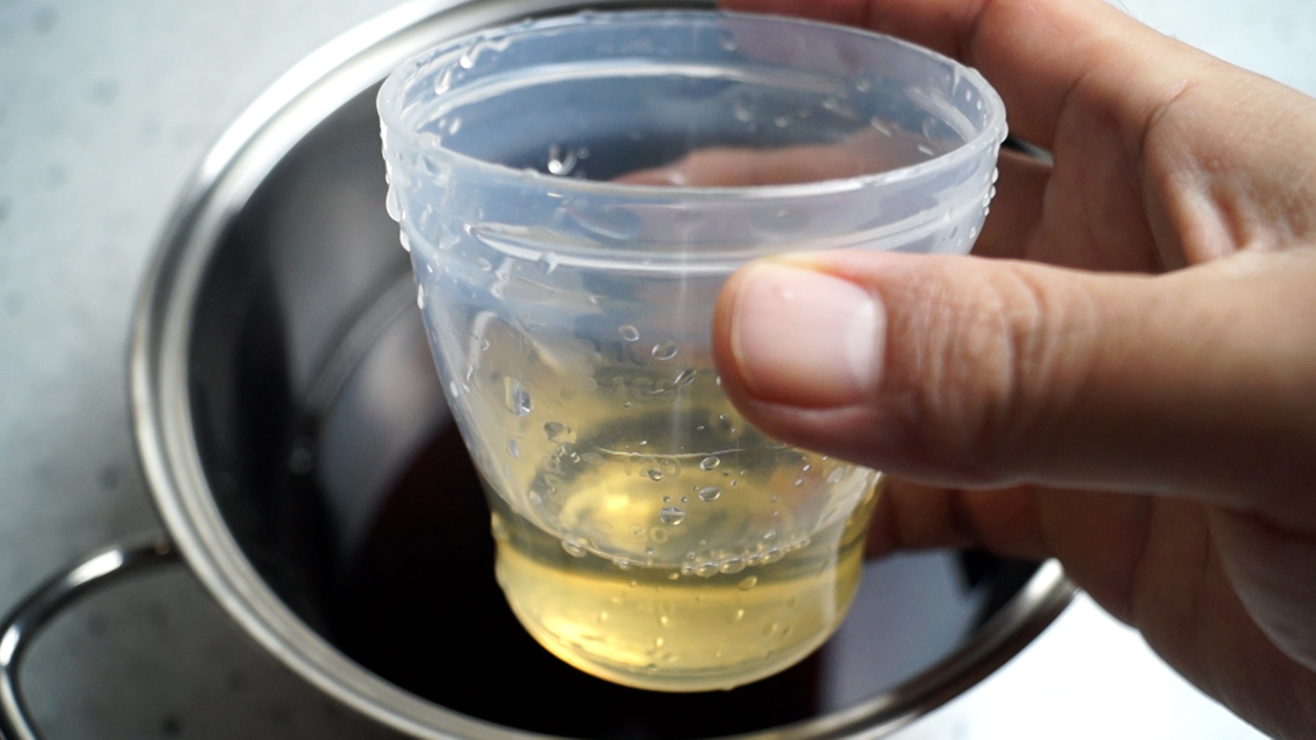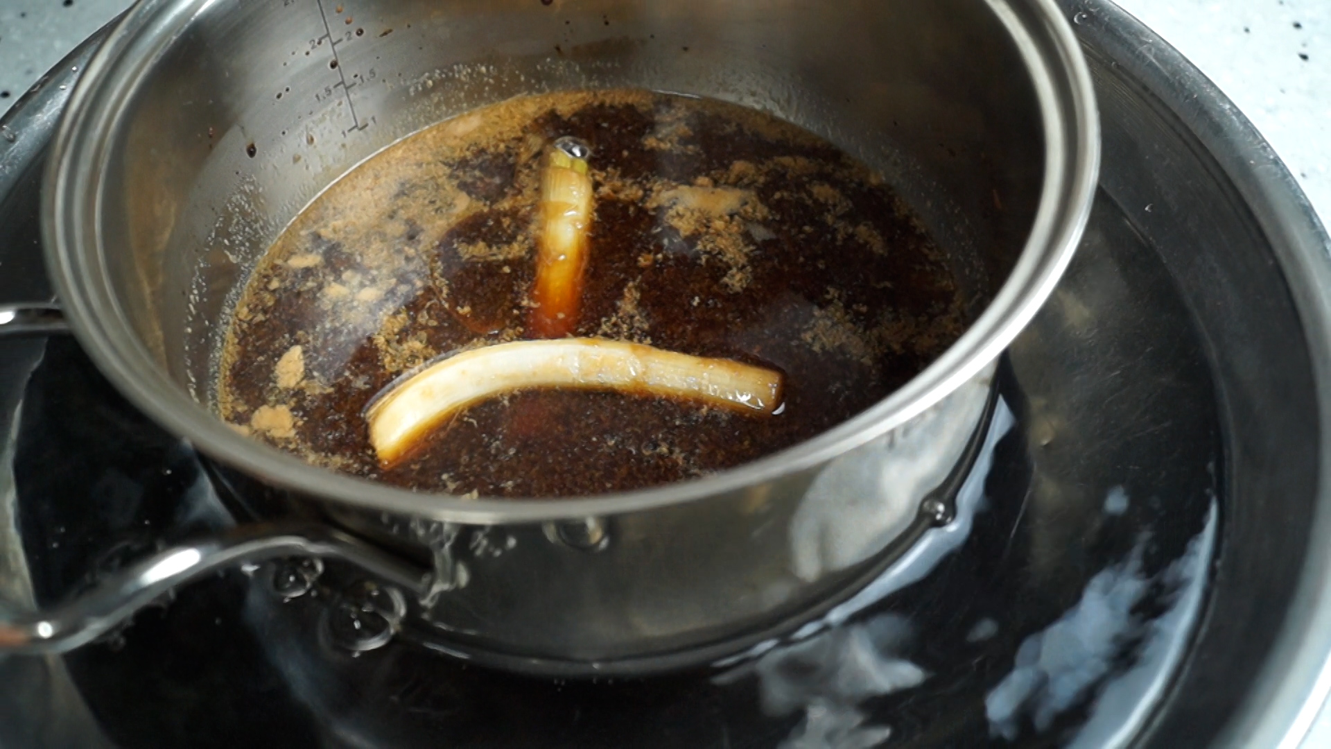 20. 간장을 찬물에 잽싸게 식혀주세요.