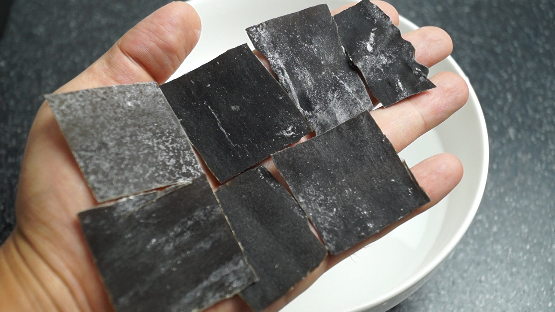 2. 다시마는 무게로 8g 또는 손바닥을 덮을 정도의 양을 깨끗히 닦아서 물에 넣어주세요.