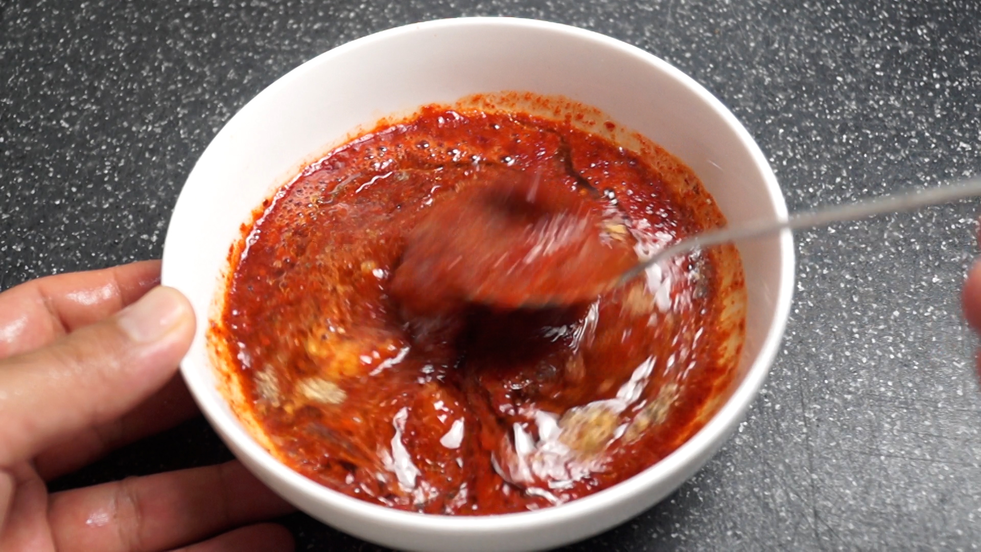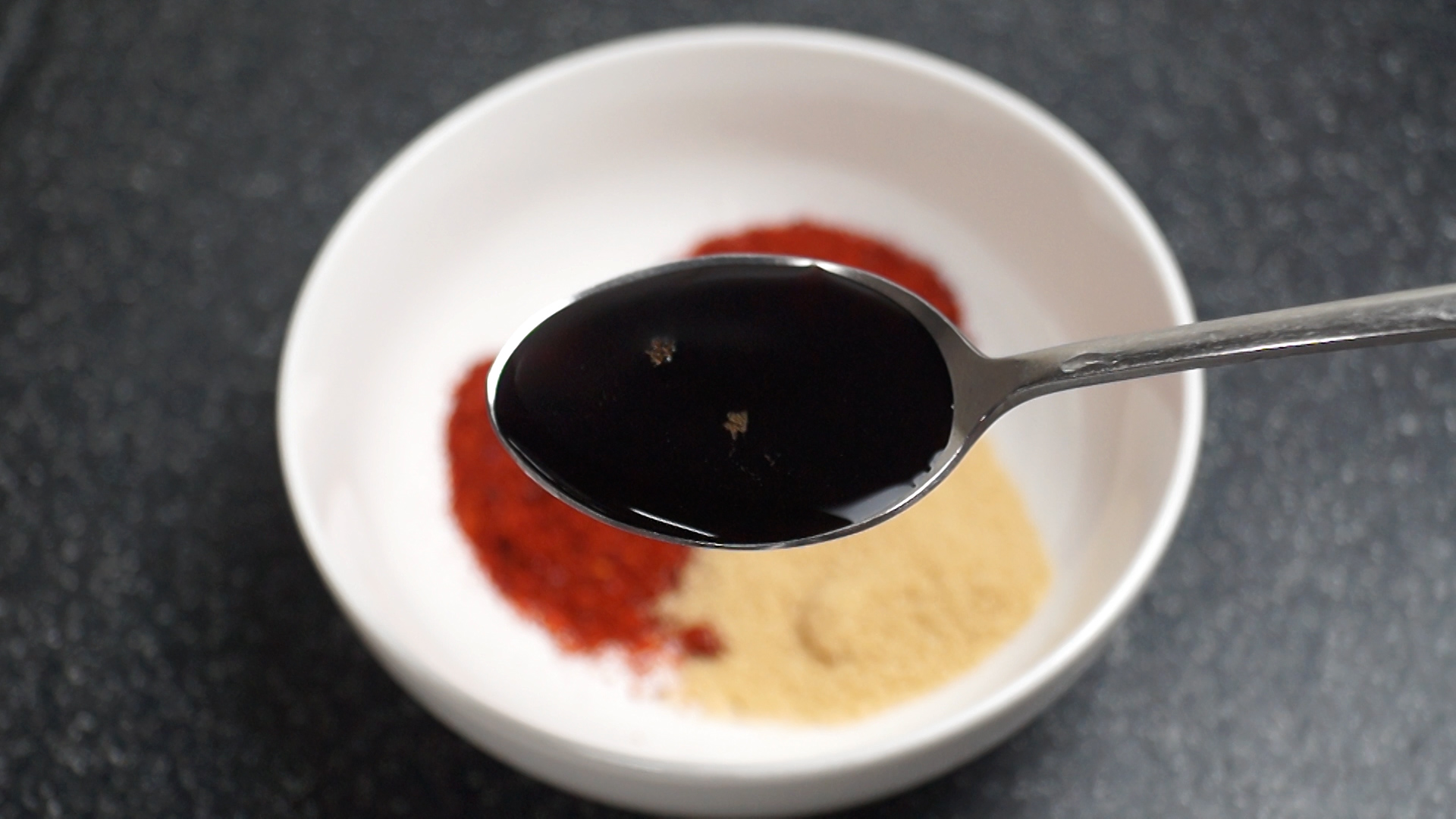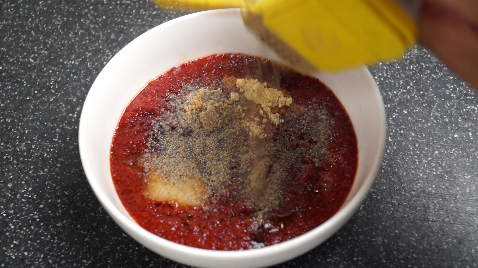 1. 양념란에 적힌 재료를 한데 넣어주세요. 재료가 좀 많지만 그만큼 맛보장!! 고춧가루는 중간입자 고춧가루를 사용해주세요.