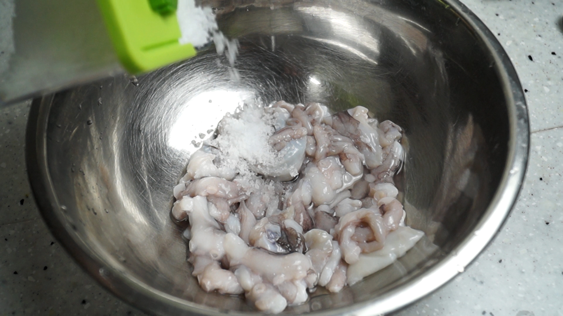 2. 손질한 낙지에 소금과 밀가루를 분량껏 넣어주세요. 소금은 표기된 만큼 넣고 밀가루는 좀 더 넉넉하게 넣어도 괜찮습니다.