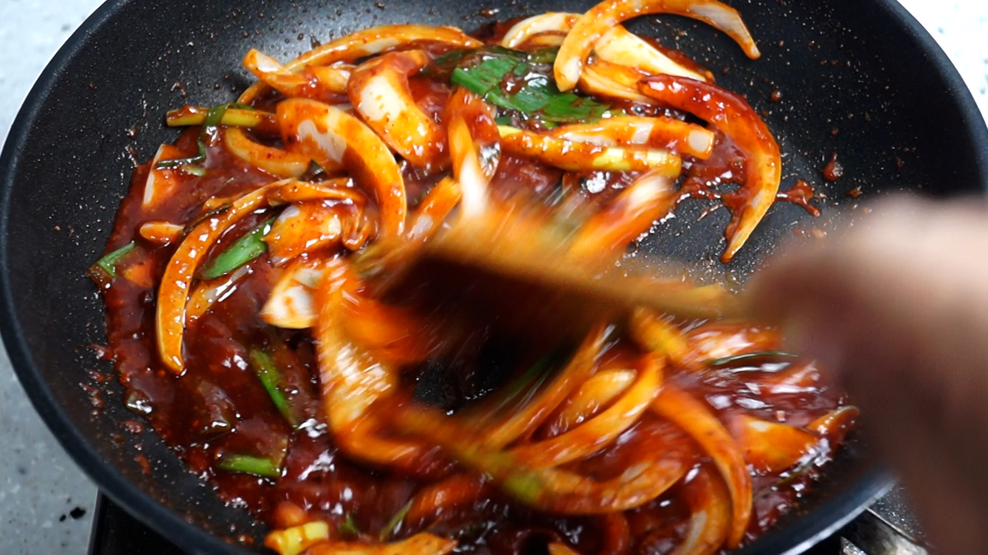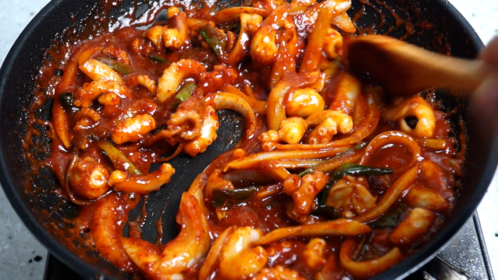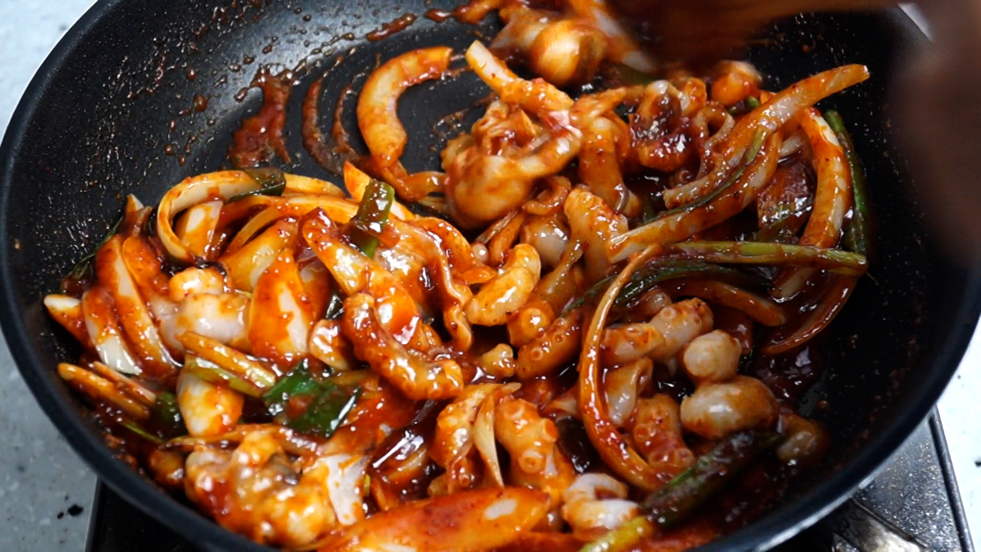 25. 낙지를 넣고 강불 유지하고 30~40초를 볶아주세요