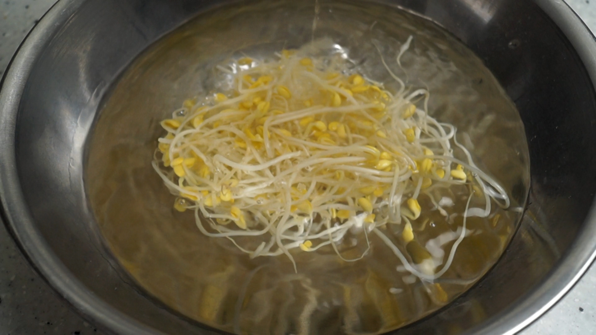 22. 콩나물은 끓는물에 2분 정도를 삶은 다음 찬물에 바로 식힌 다음 물기를 털어 준비해주세요. 뜨거운 대로 놔주면 잔열에 콩나물이 쪼그라들며 질겨질수 있어요.