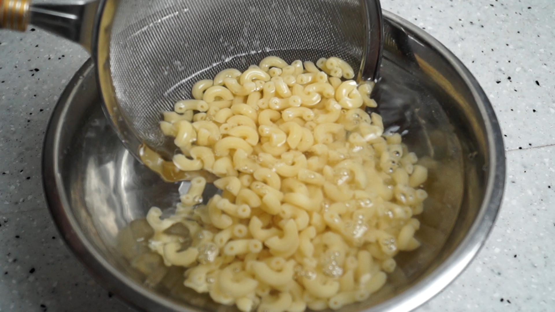 14. 식힌 마카로니는 물기를 탈탙탈 털어주세요.