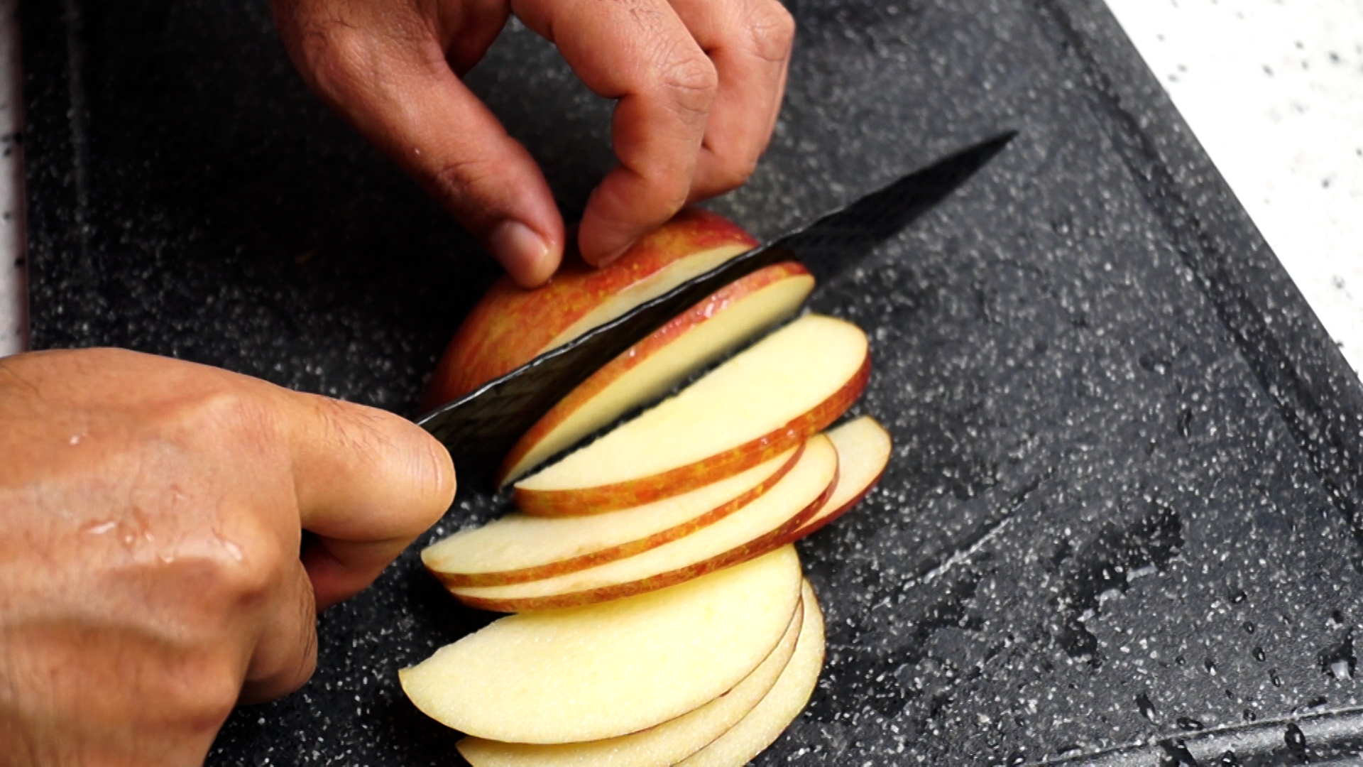 1. 주먹만한 사과 1개를 절반 사용할거에요. 깨끗히 씻어서 반으로 잘라주시고 기호에 따라 껍질은 벗겨주세요.