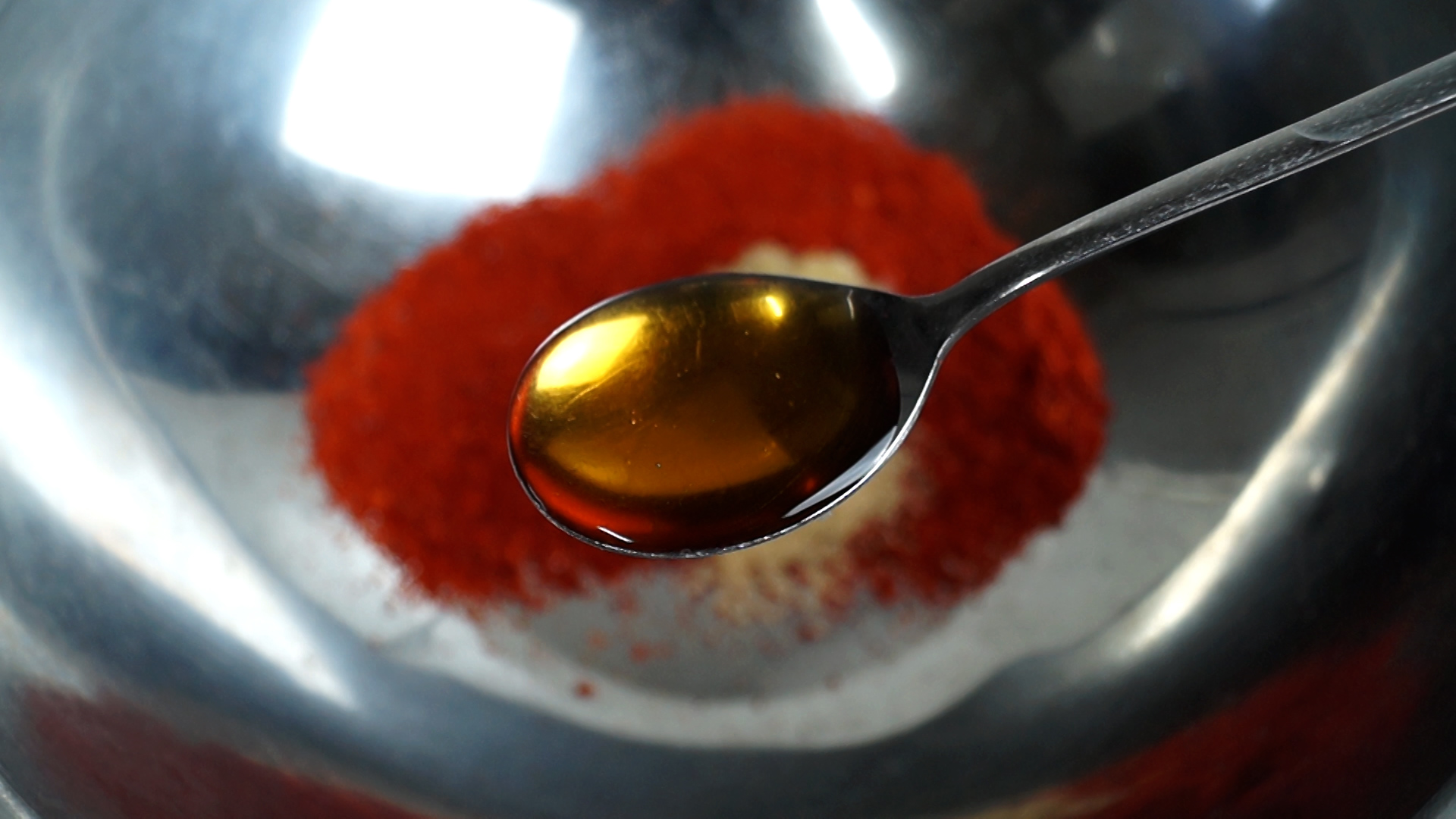 7. 볼에 양념란에 적힌 재료를 전부 부어주세요. 고춧가루는 중간입자 고춧가루 입니다.