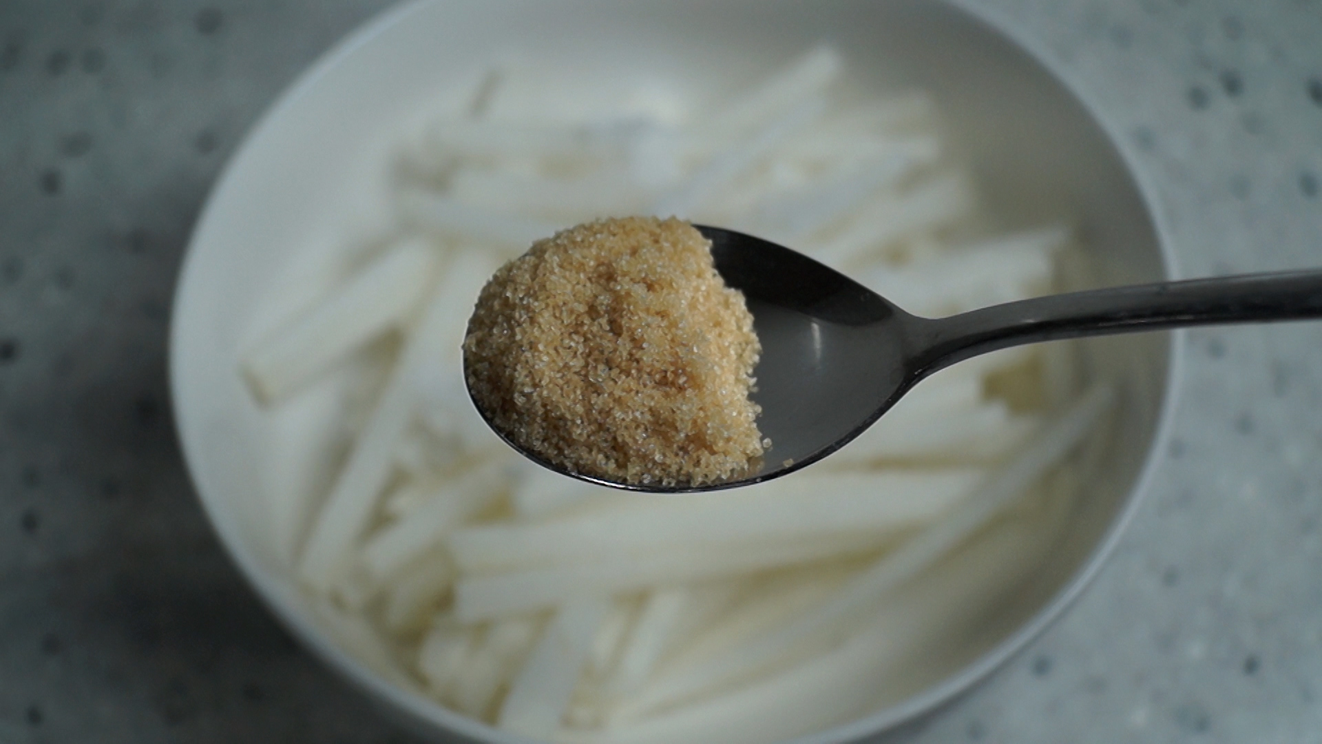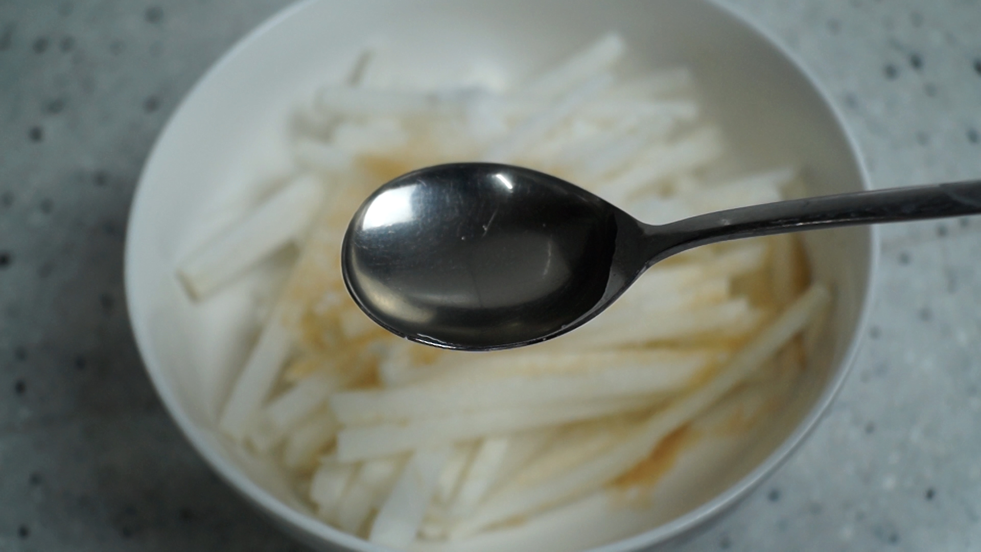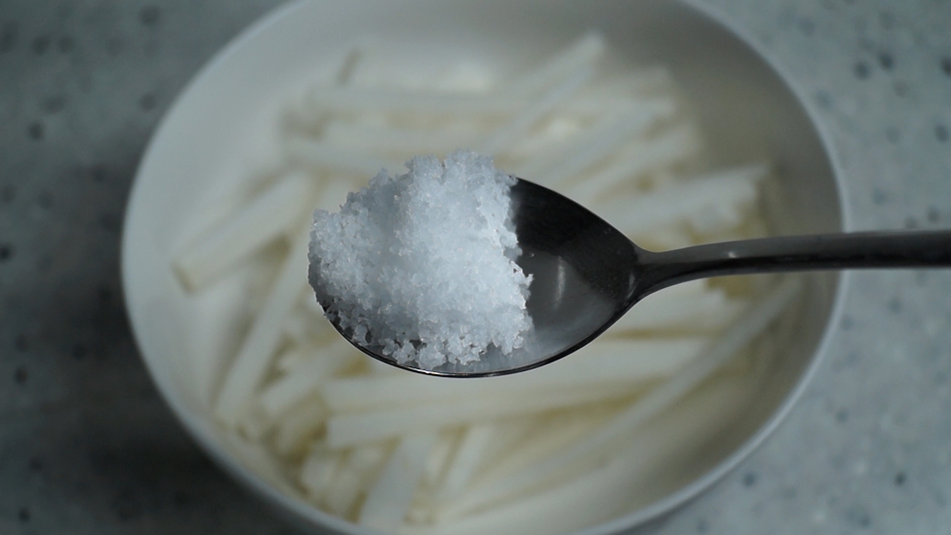 3. 썬 무우에 절임에 적힌 소금을 꽃소금으로 넣어주세요.