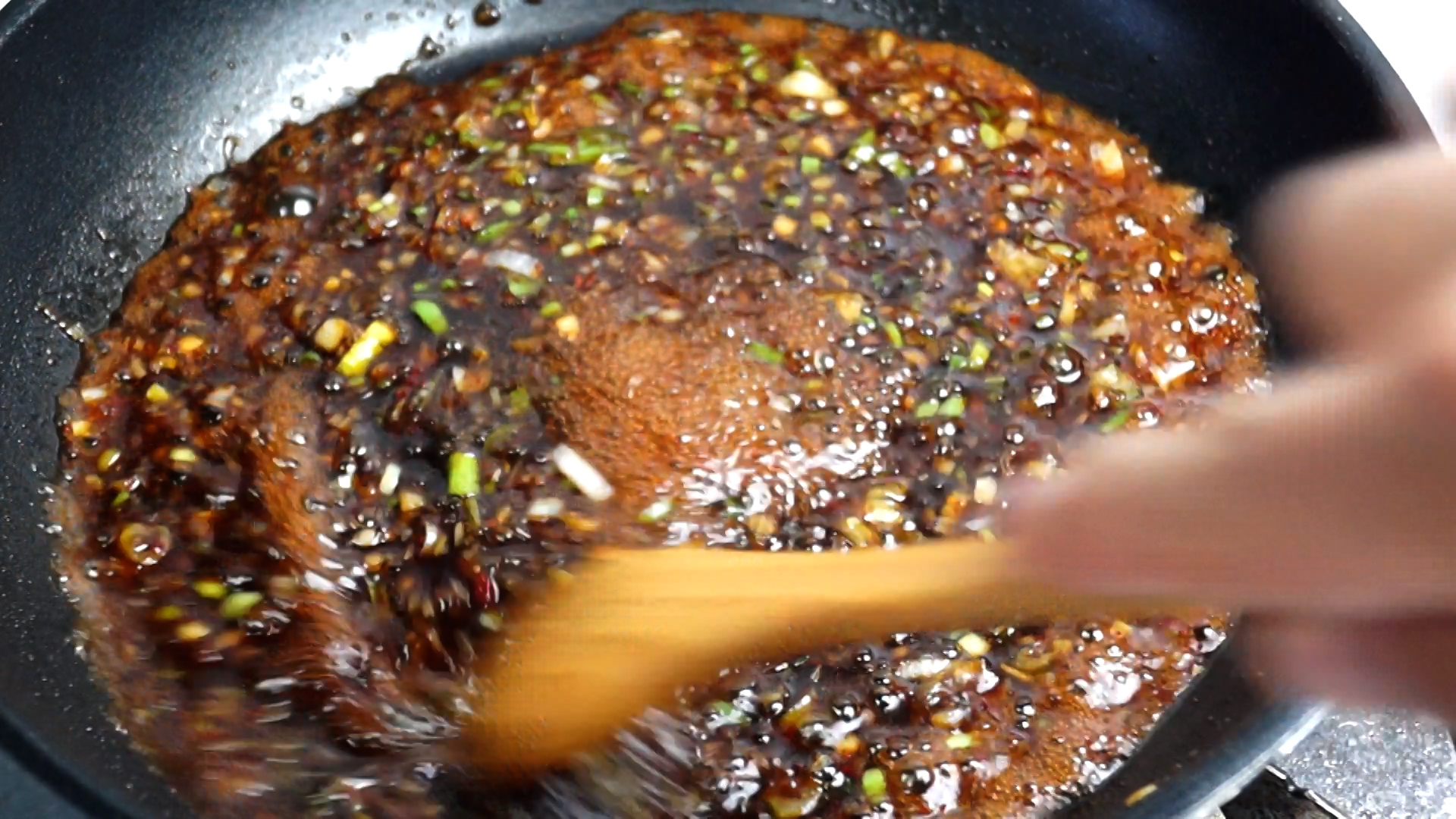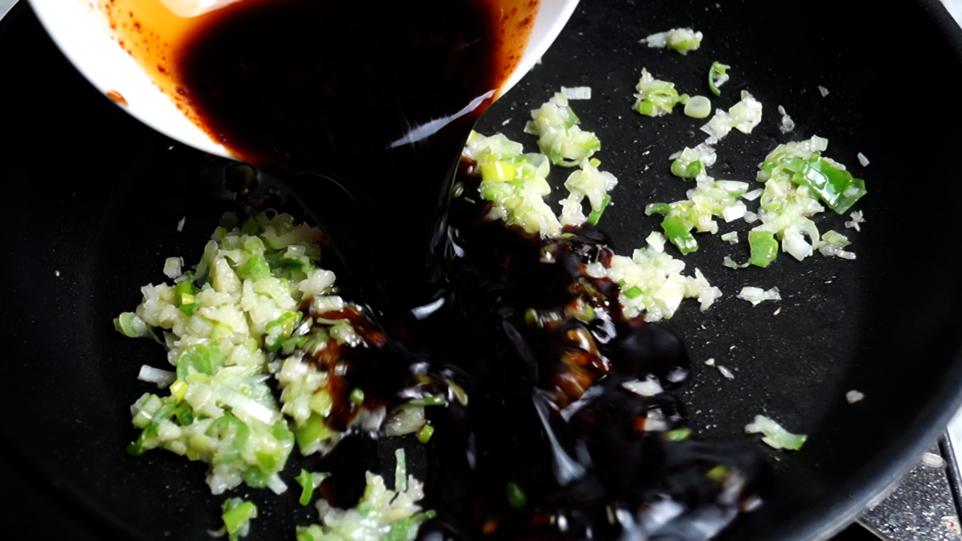 9. 양념장을 전부 부어주세요. 설거지 거리 줄이려면 마늘 대파를 볶아놓고 불을 살짝 줄인 상태에서 양념을 바로 부어주시면 됩니다.