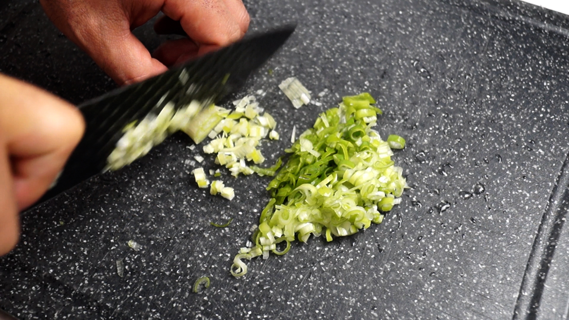 1. 대파 흰대 초록대를 적당히 섞어서 4~5큰술을 잘게잘게 다져주세요.