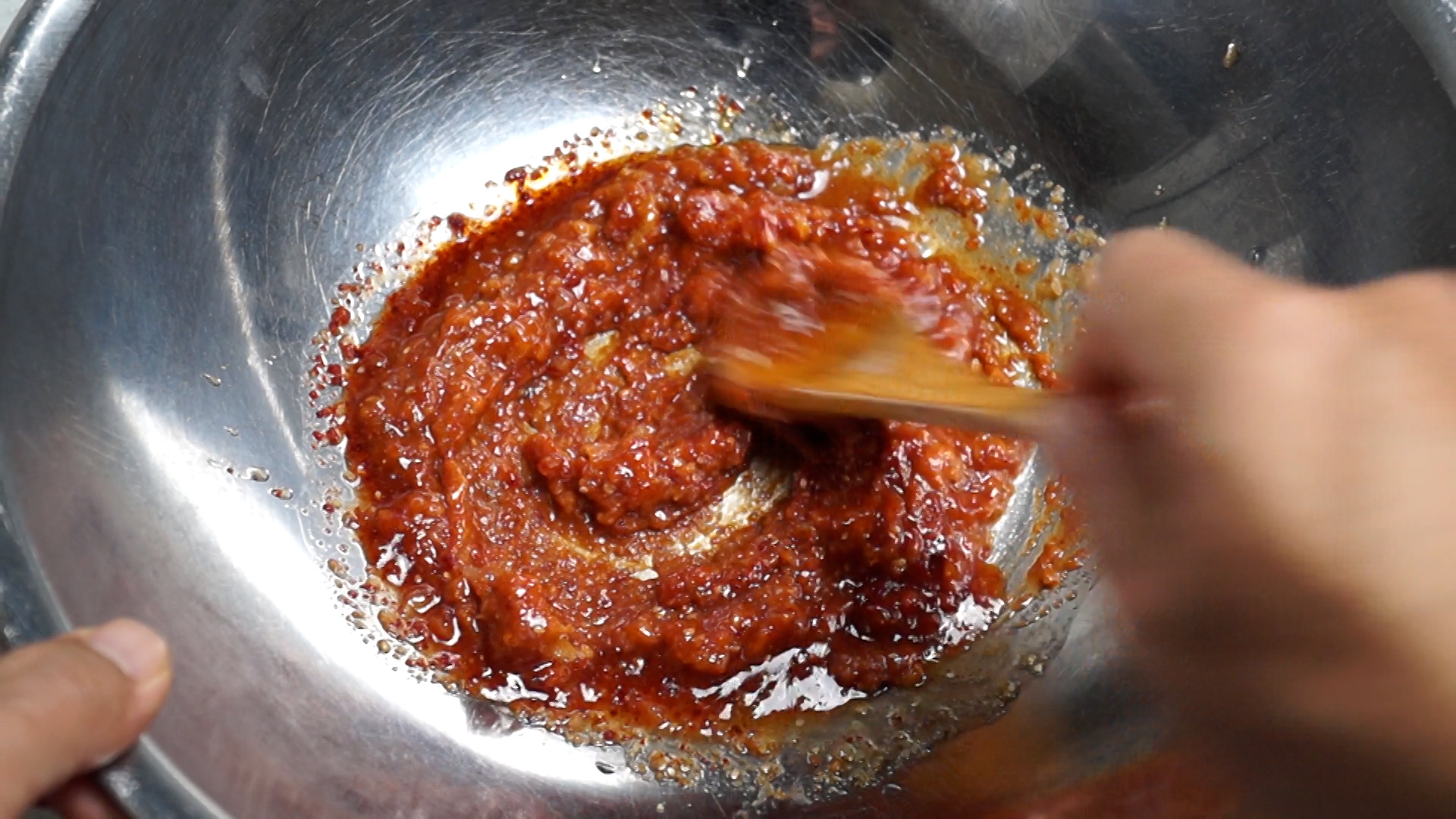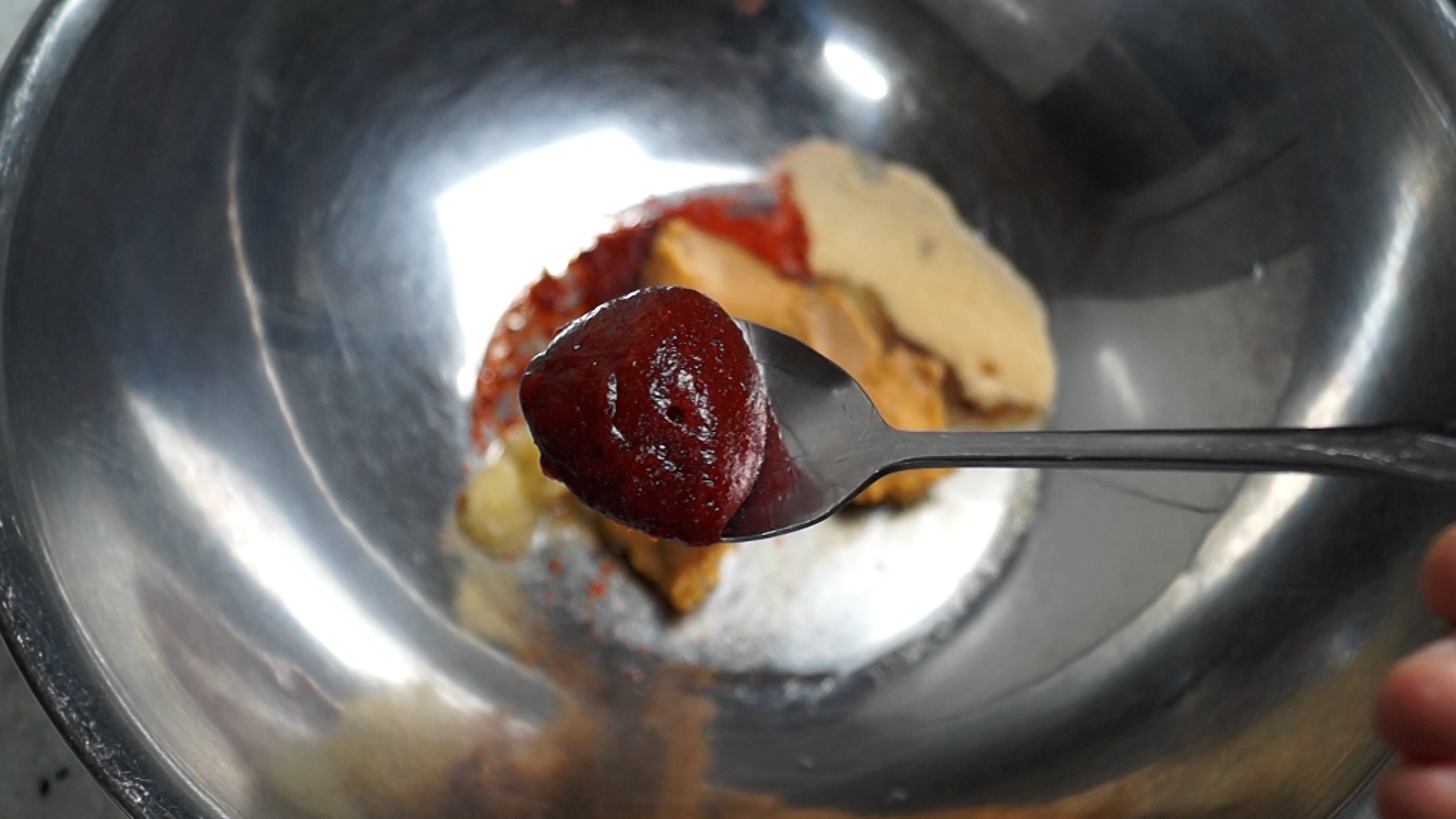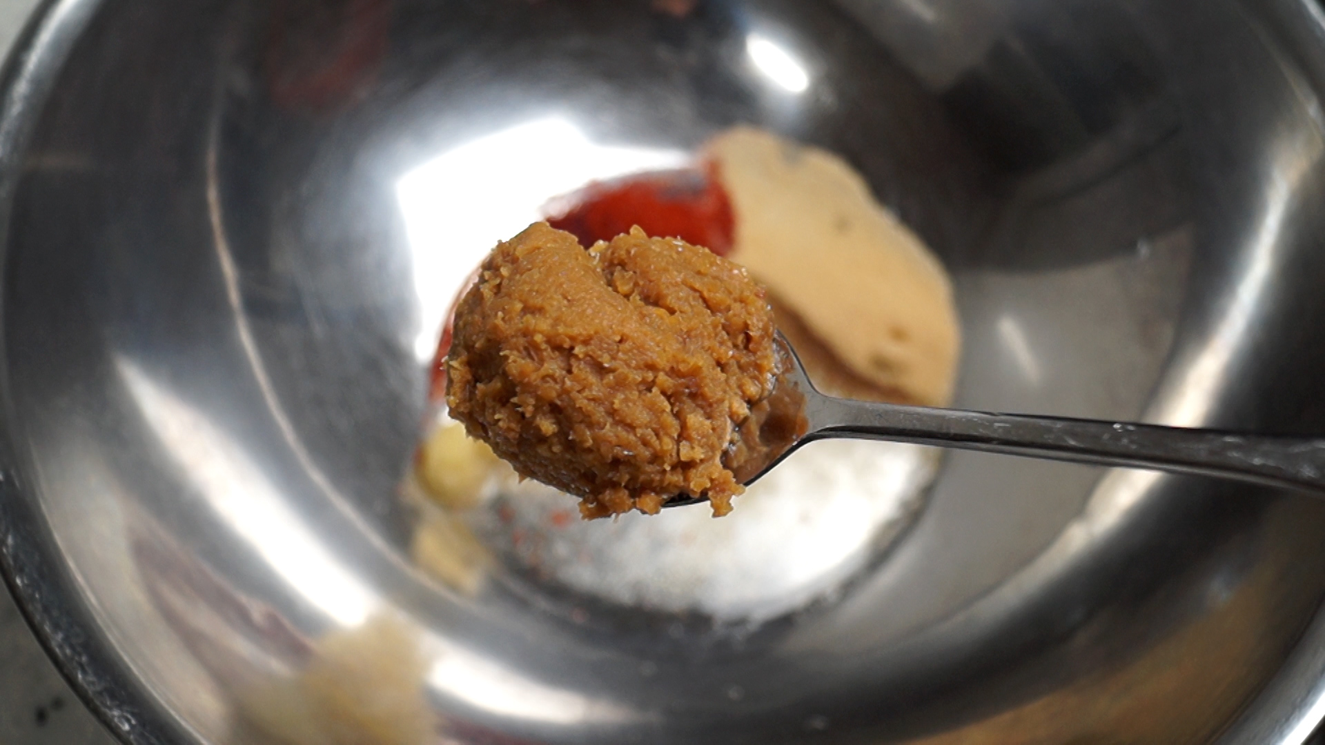 11. 고추장을 살짝 넣어주세요. 된장만 넣는것 보단 고추장을 살짝 보태주면 고추장 특유의 칼칼한 매운맛이 살짝 보태져 양념맛이 일품입니다