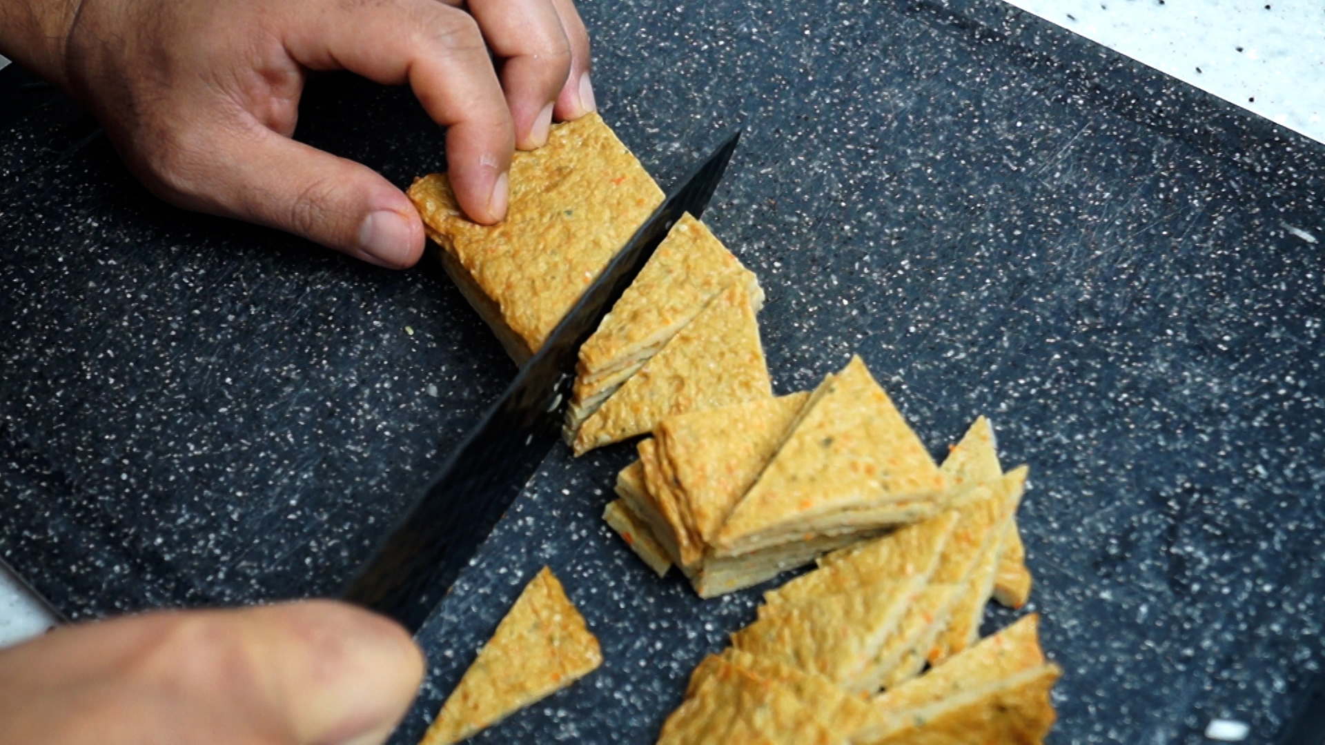 1. 어묵을 기호에 맞게 썰어주세요. 어묵은 장당 무게가 다 다르니 구매한 제품 무게를 확인하고 장수를 정하세요.