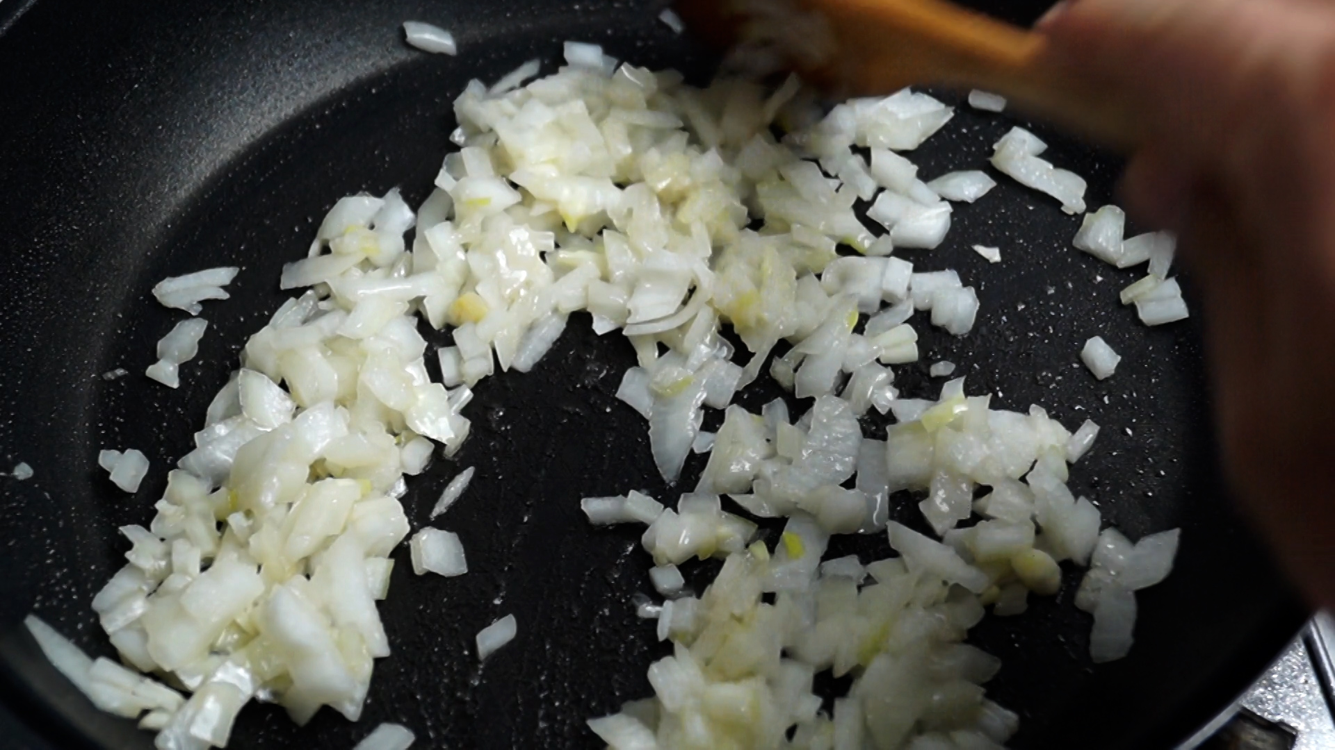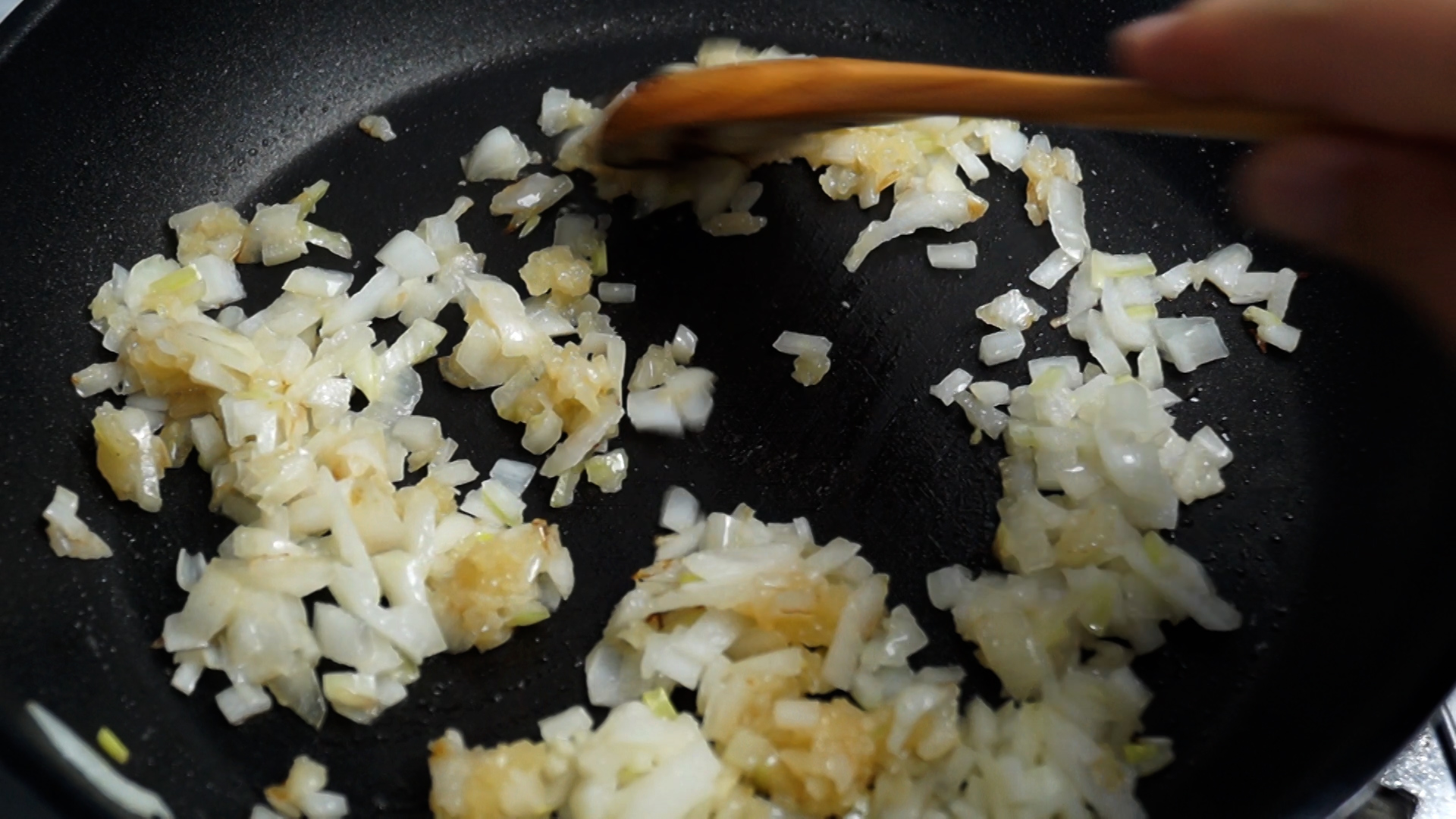 3. 팬에 식용유와 참기름을 부어 강부로 달궈서 양파를 1분 정도 볶아주세요.