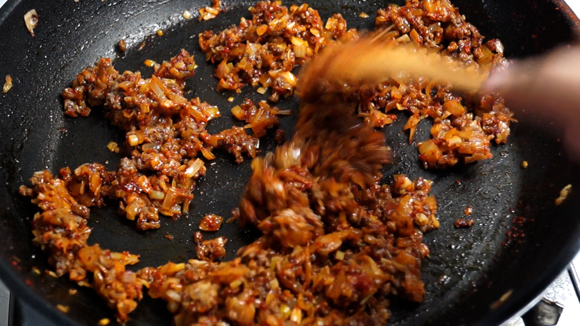 8. 고춧가루 넣고 30~40초를 더 볶아주세요.
