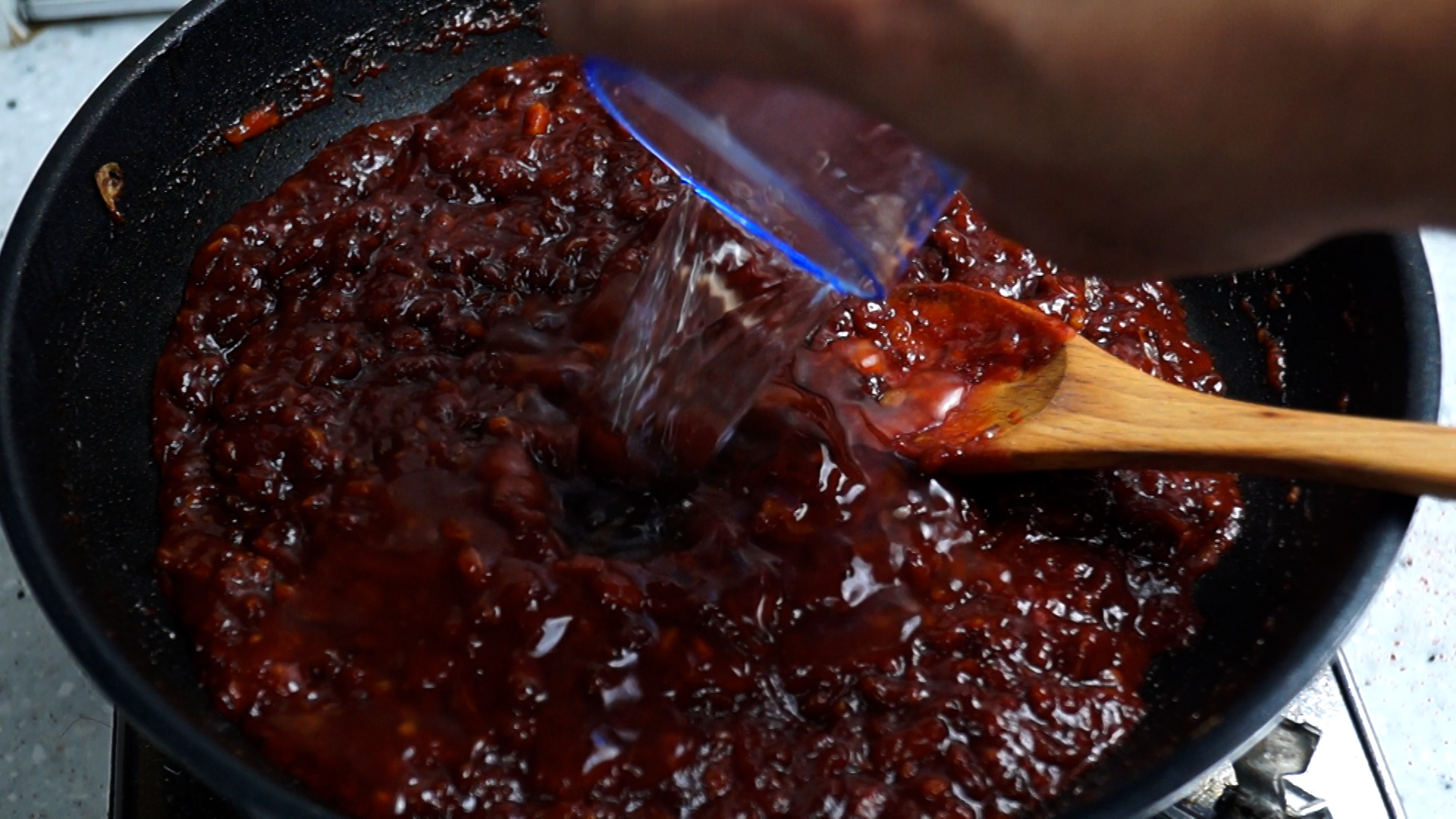 9. 불을 잠시 끄고 양념을 넣어주세요. 집고추장 보다는 시판 고추장을 넣어주세요.