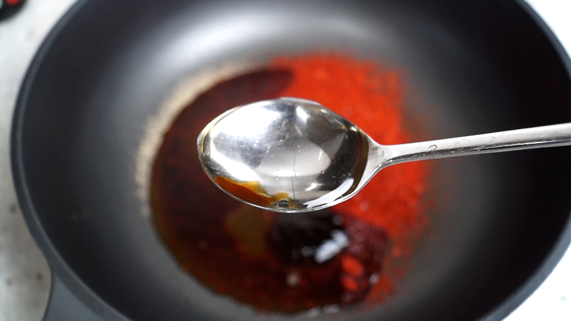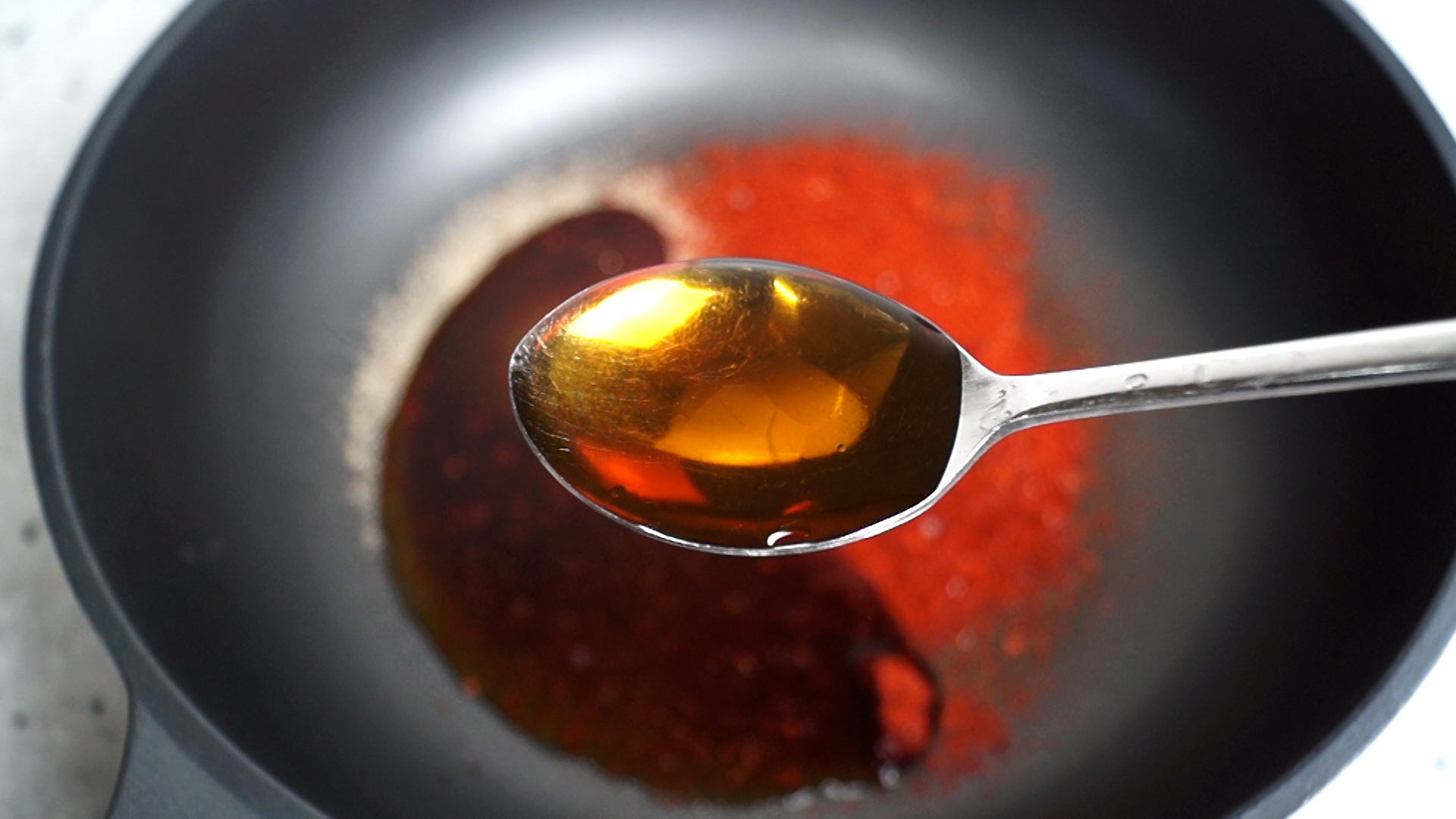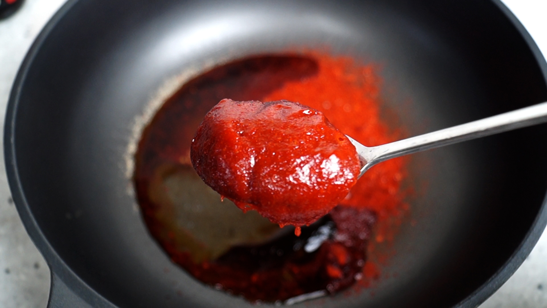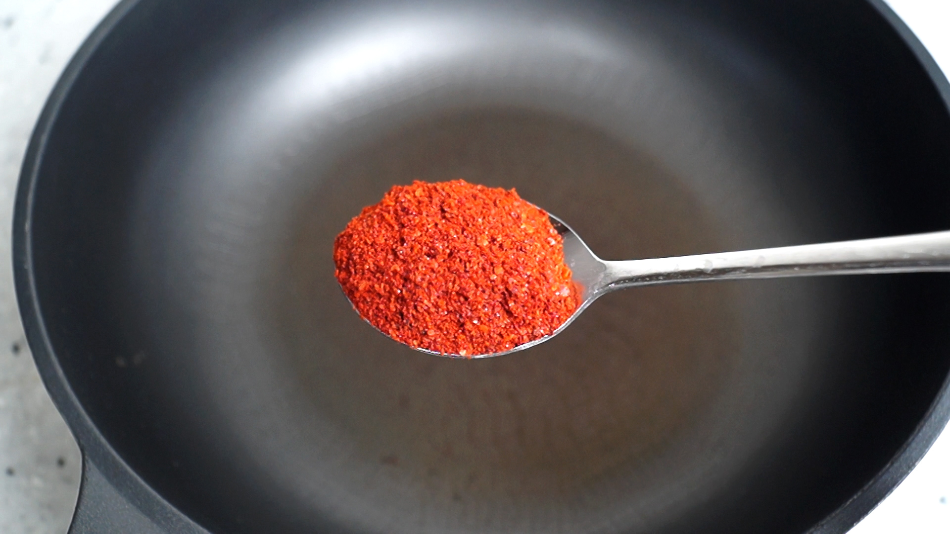 3. 양념란에 적힌 재료를 전부 웍이나 팬에 부어주세요. 고춧가루는 중간입자 고춧가루입니다.