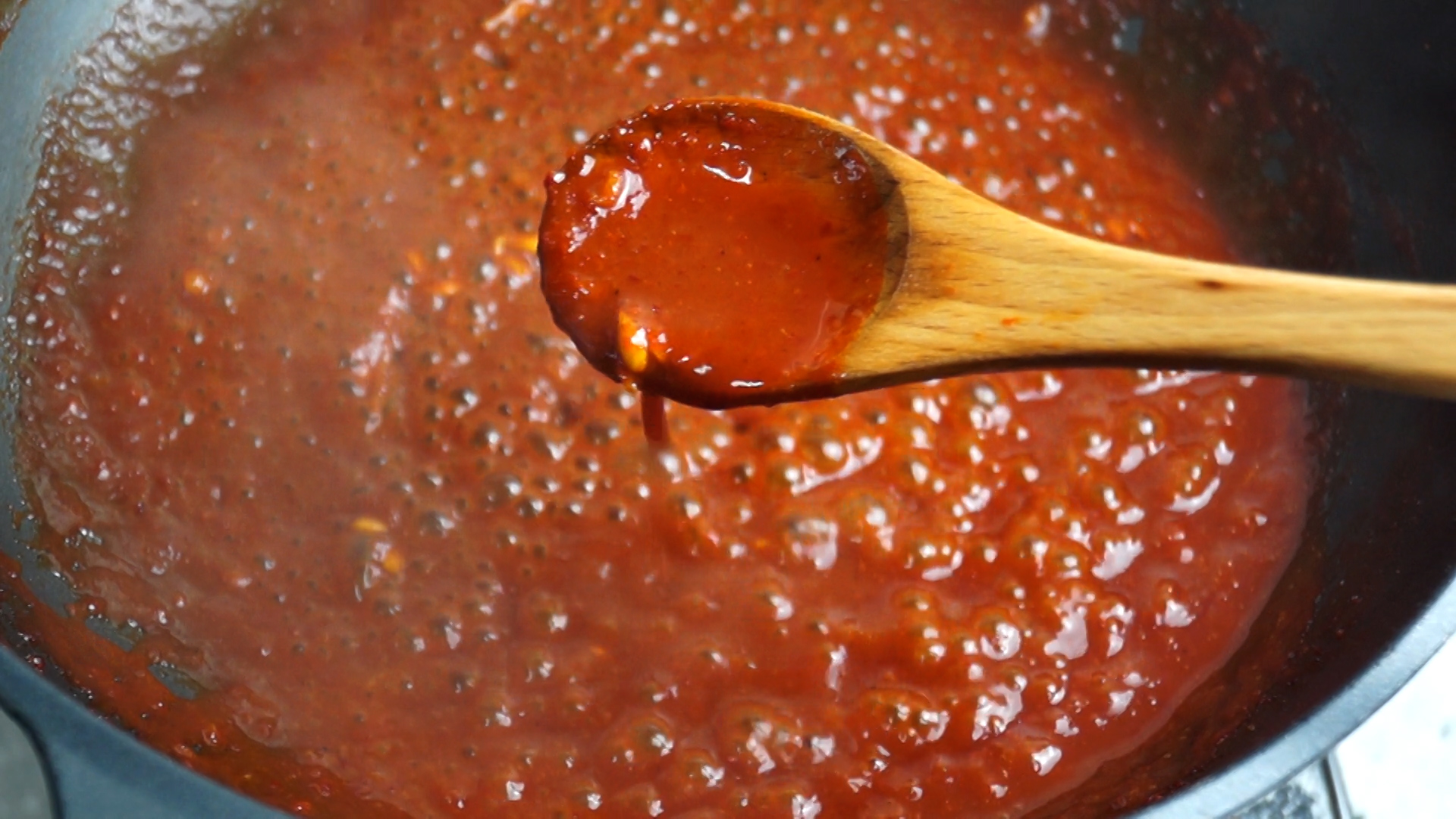 18. 양념만 남기고 불을 강불로 올리고 양녀이 꾸덕꾸덕하게 쫄아 들때 까지 끓여주세요.