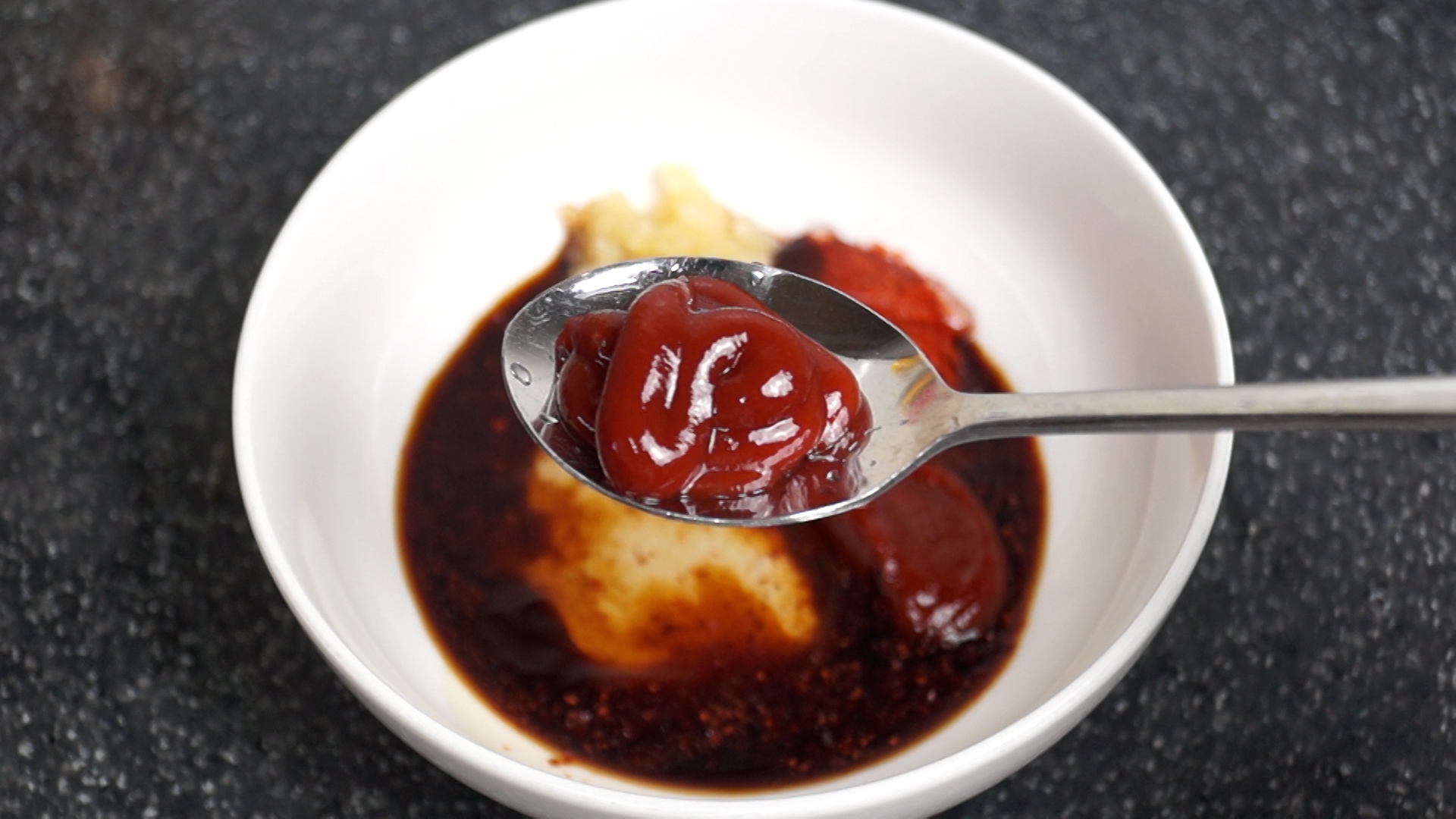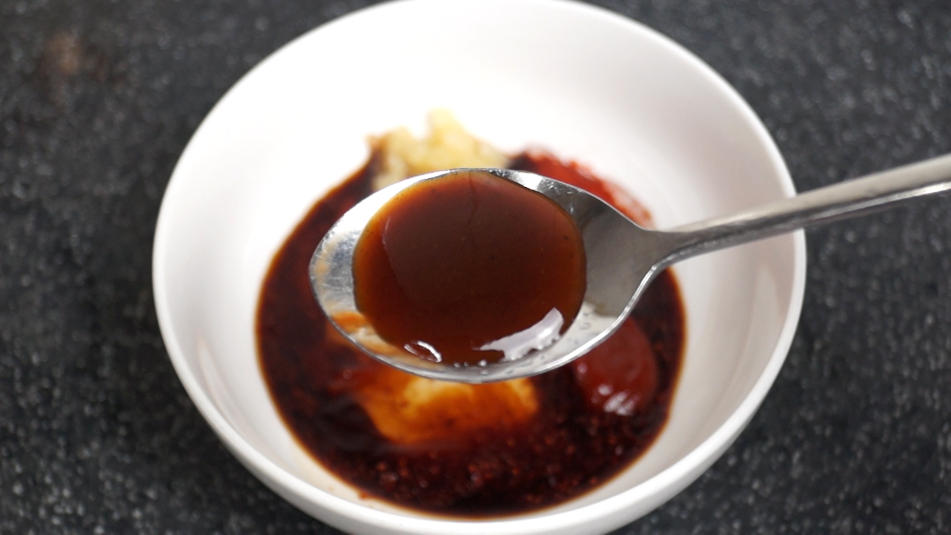 15. 돈까스 소스를 넣어주세요. 돈까스 소스가 없을땐 케찹을 그만큼 더 넣어주세요.