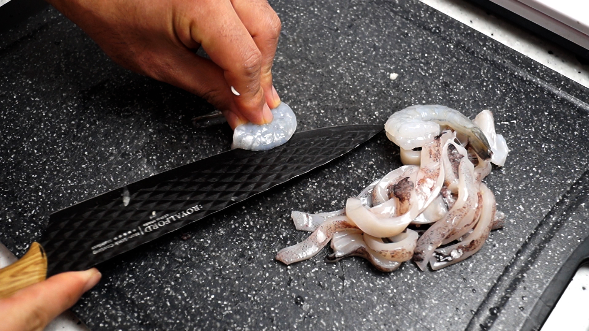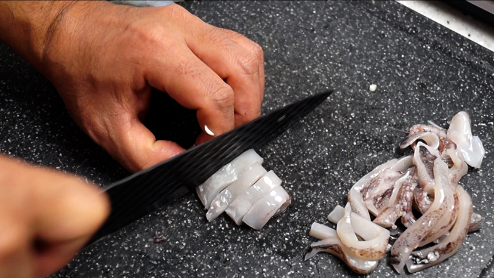 5. 오징어 반머리를 먹기 좋은 크기로 썰어주세요.