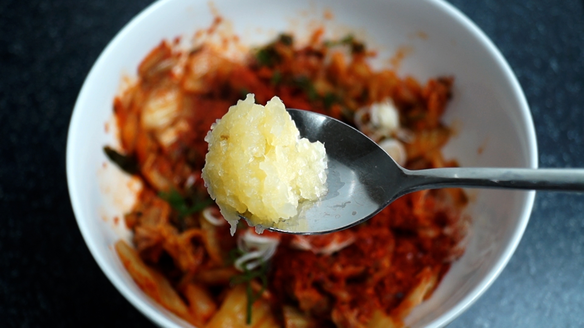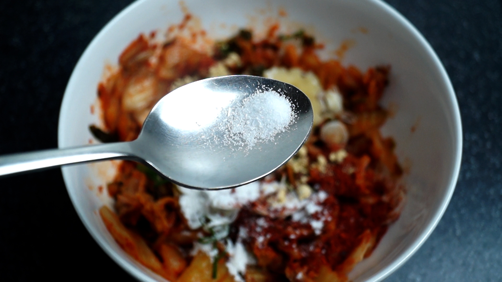 8. 생강가루를 살짝 넣어주세요. 없으면 생략하셔도 괜찮지만 넣어보시면 김치나 고춧가루 매운 맛과 달리 살짝~ 치고 올라오는 매운맛이 일품입니다.