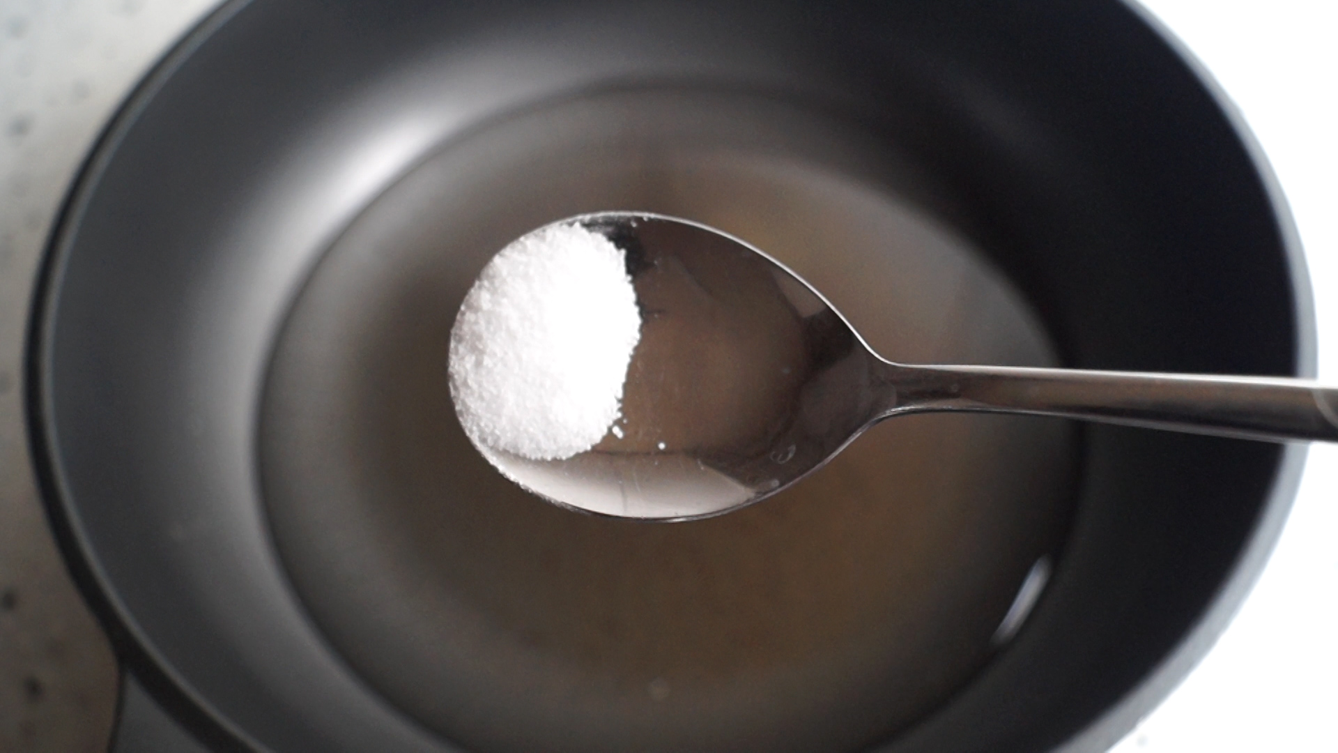 2. 설탕을 넣어주세요. 우동국물 간장짠맛과 어우러진 단맛을 이 설탕이 만들어 줄거에요.
