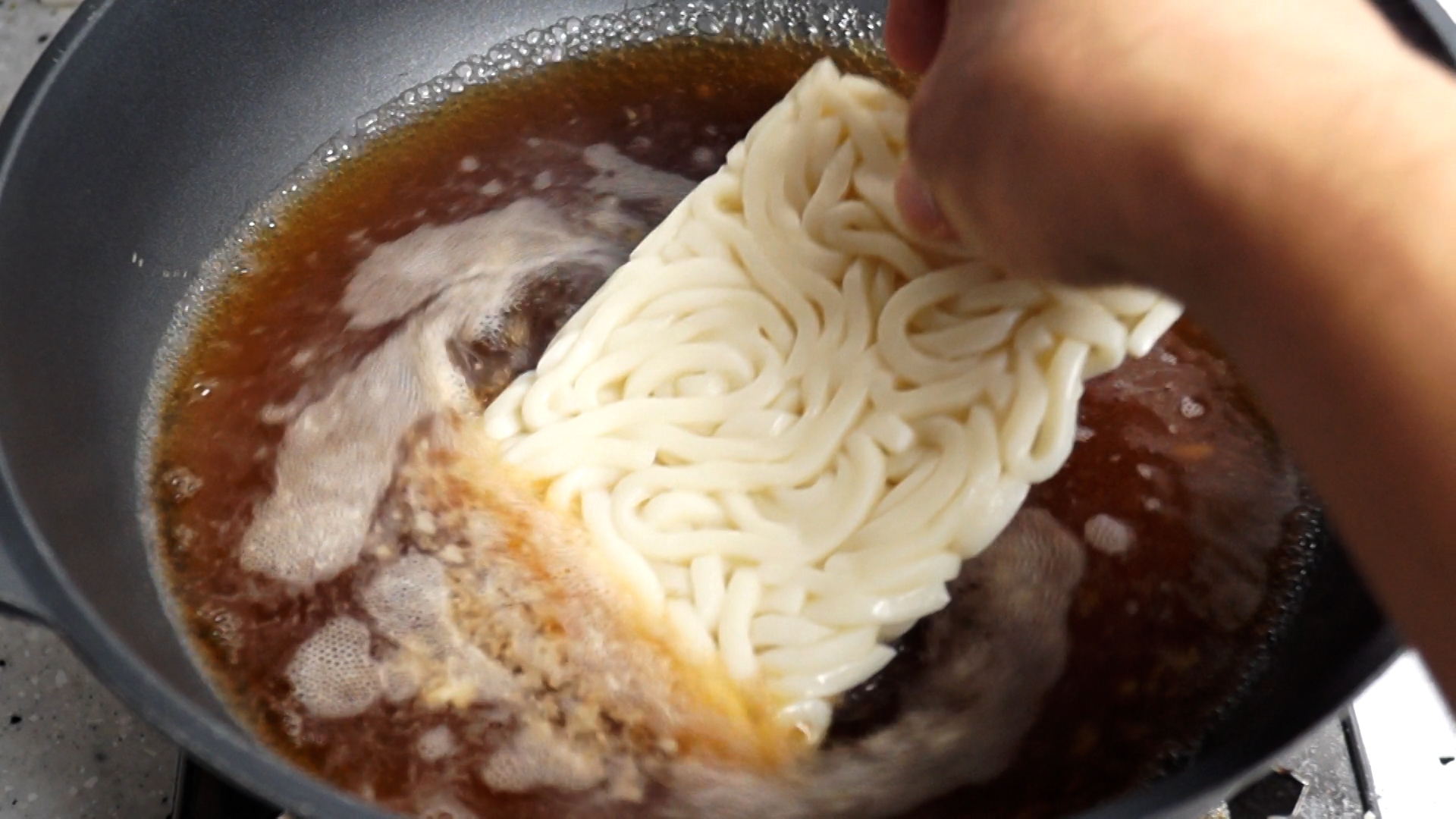12. 완성후 대접에 우동과 국물을 부어주세요.