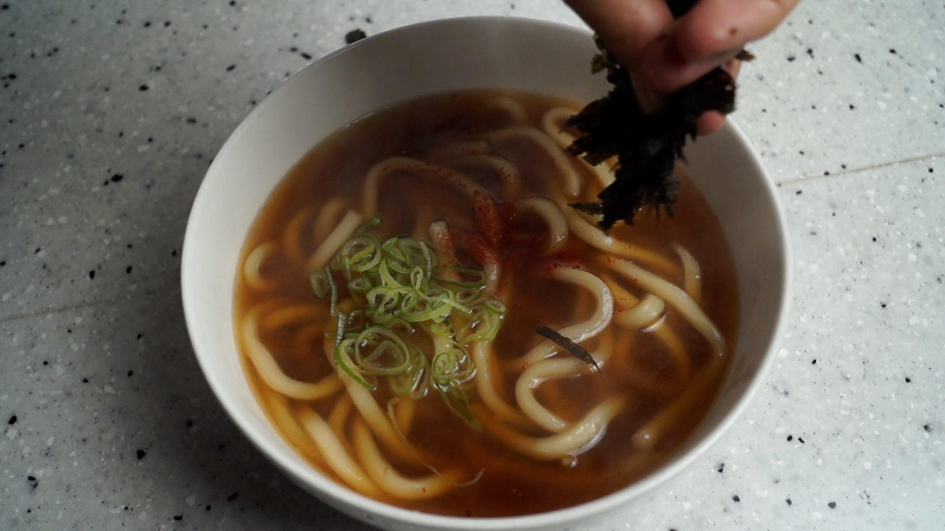 14. 누구나 맛보면 깜짝 놀라는 우동완성! 기호에 따라 유부. 어묵, 쑥갓, 맛살들을 올려드시면 더욱 맛있습니다.