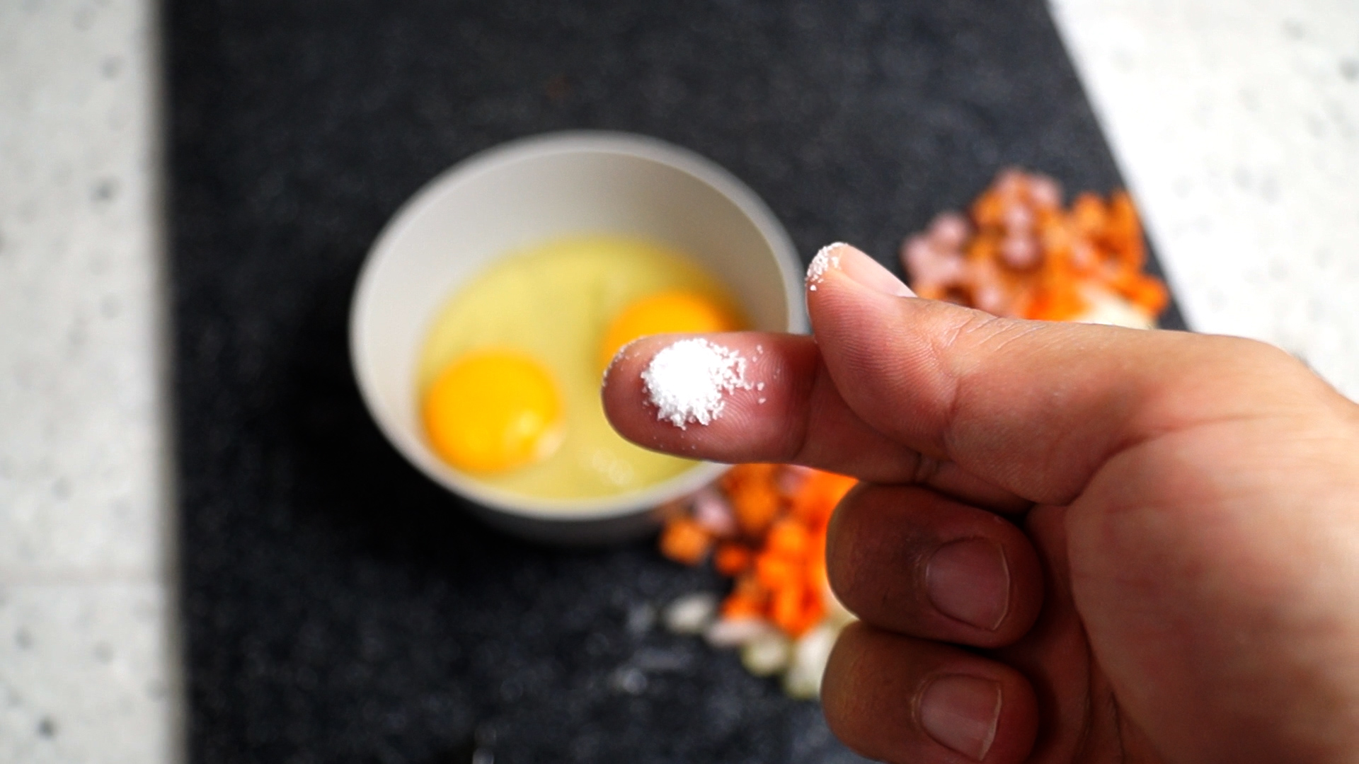 6. 계란 1알당 맛소금 1꼬집씩 넣어서 계란 간을 맞춰주세요.