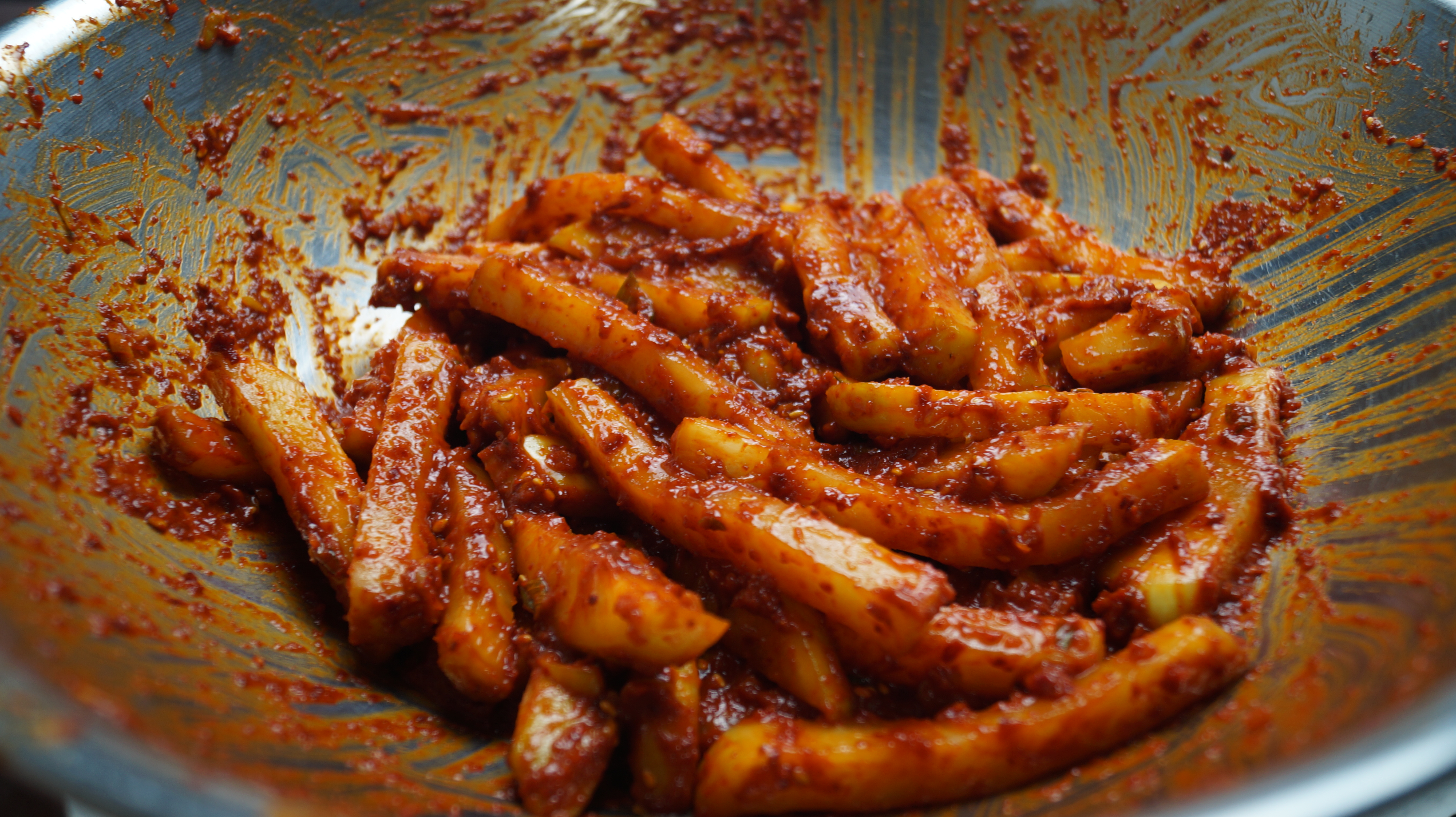 24. 양념을 우선 80% 만 넣고 버무려주시고 색감이나 무우양을 보고 양념을 추가해주세요. 남은 양념은 냉장 보관했다가 다음 김치 담을때 활용하시면 좋아요~