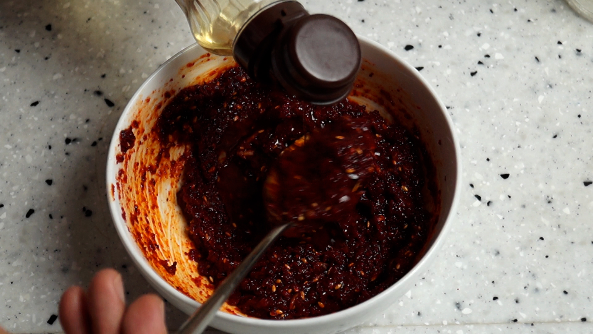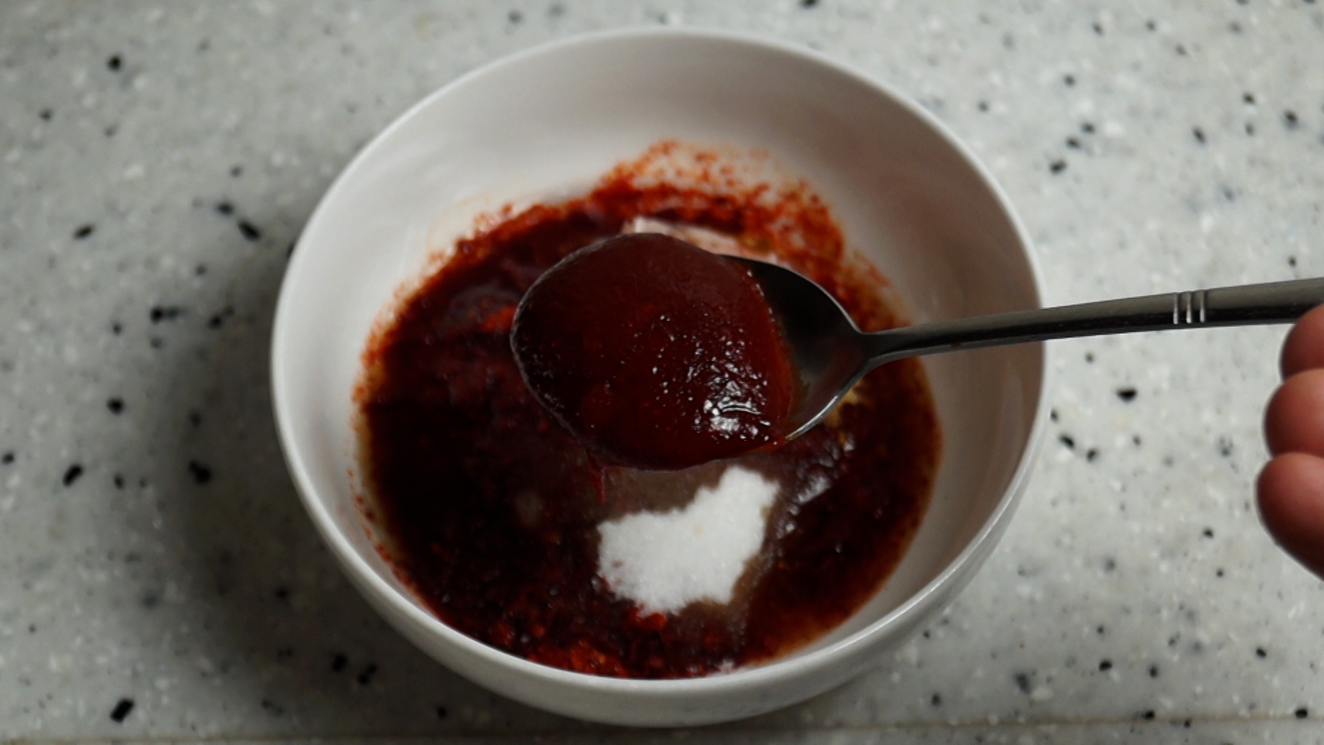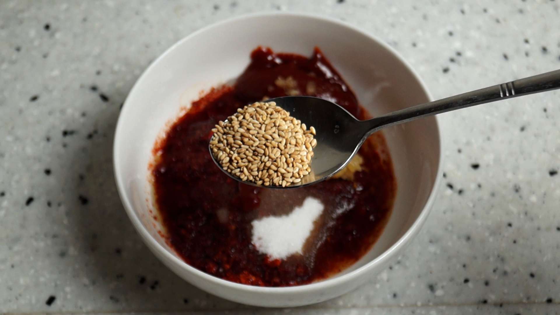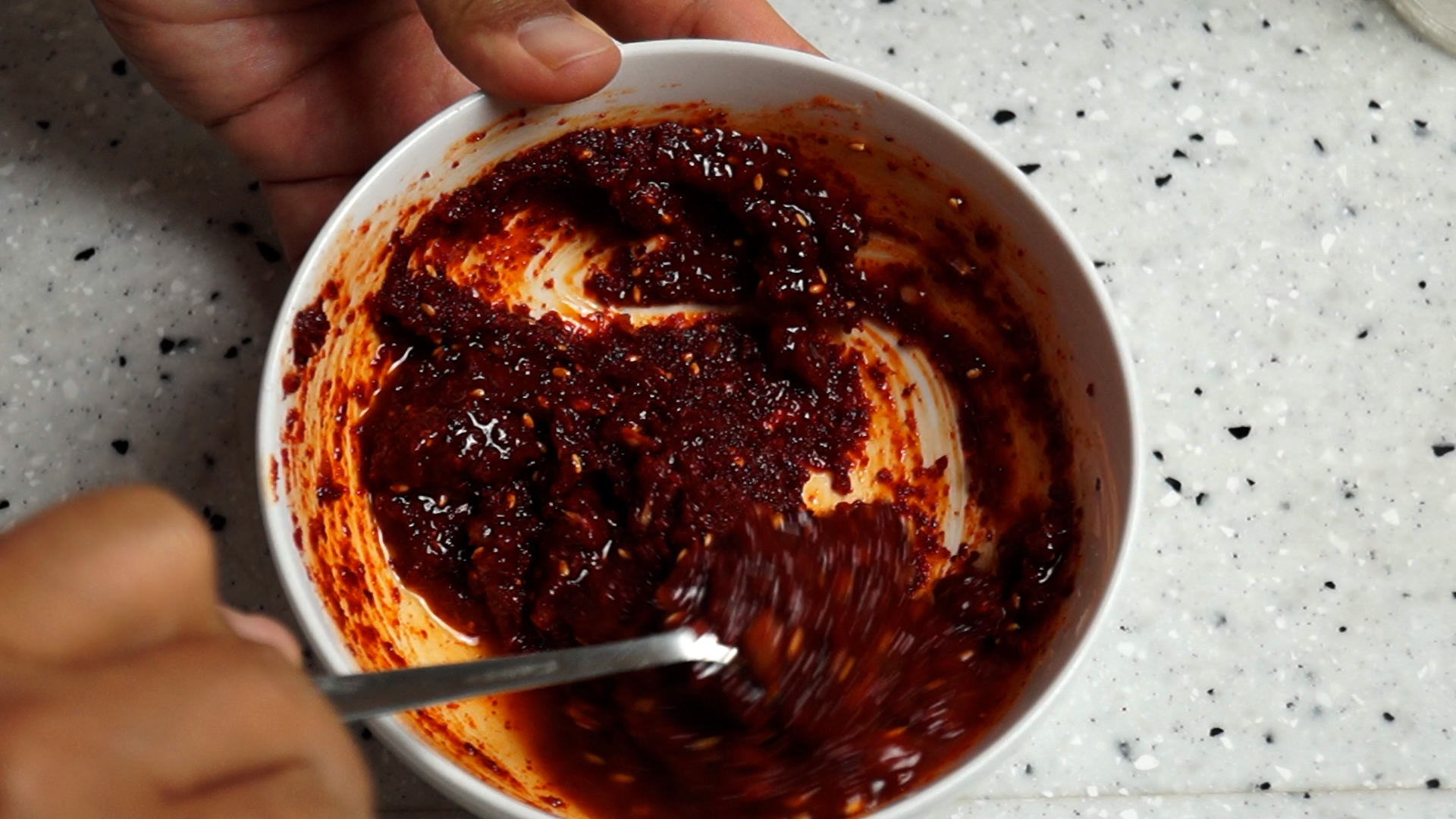 14. 고추장을 살짝 넣어보세요. 일반적으로 담는 보쌈김치보다 양념이 입에 착착 감깁니다~