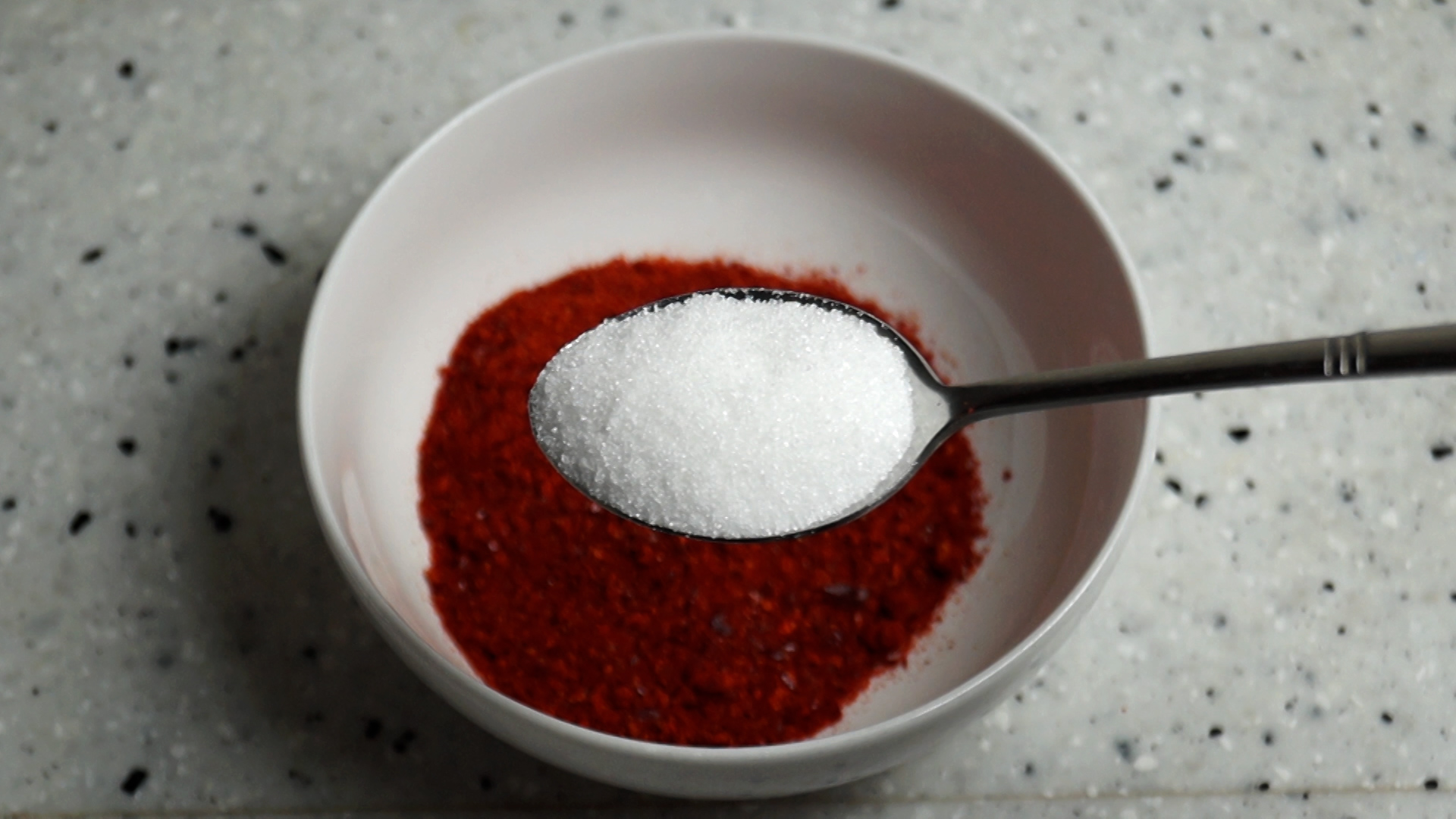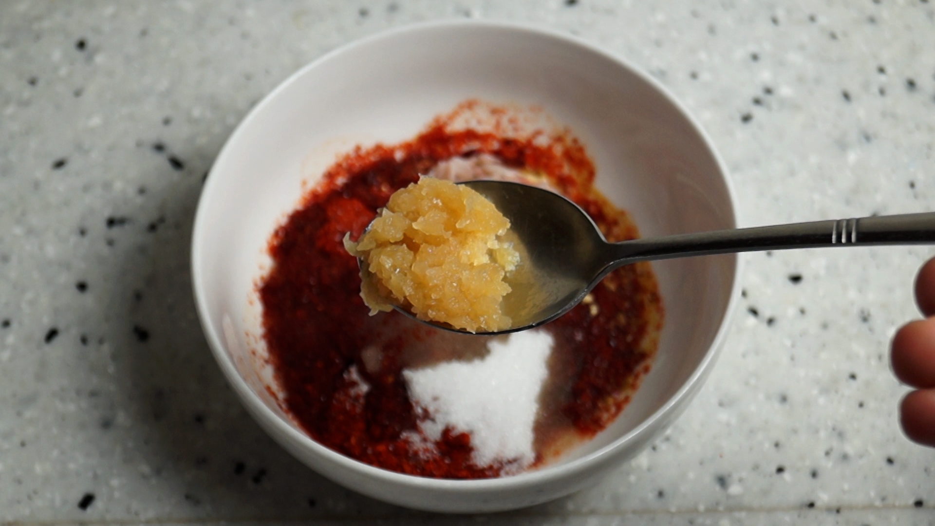 6.양념란에 적힌 재료를 한데 넣어주세요. 고춧가루는 김치용 중간입자 고춧가루 사용해주세요.