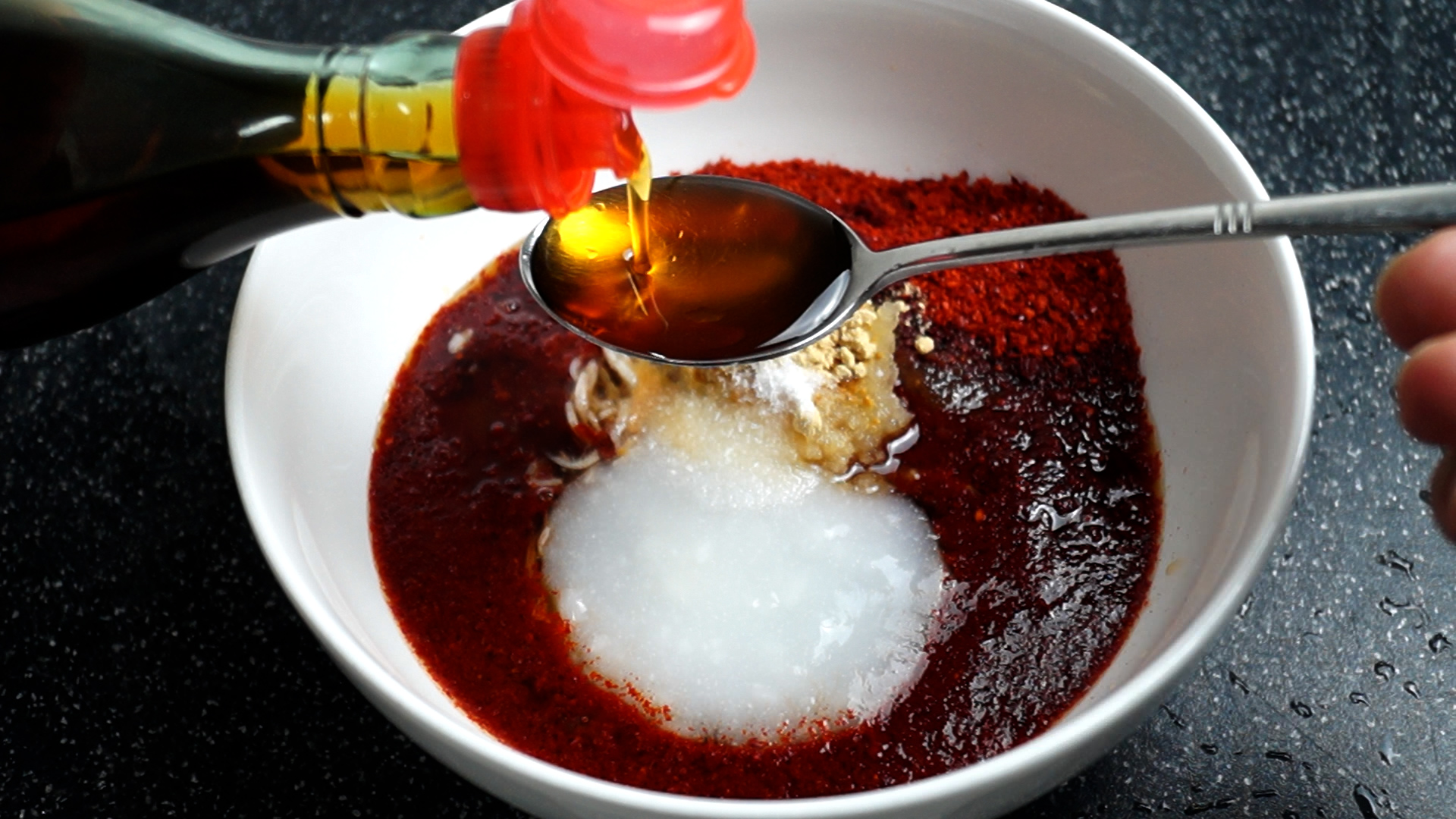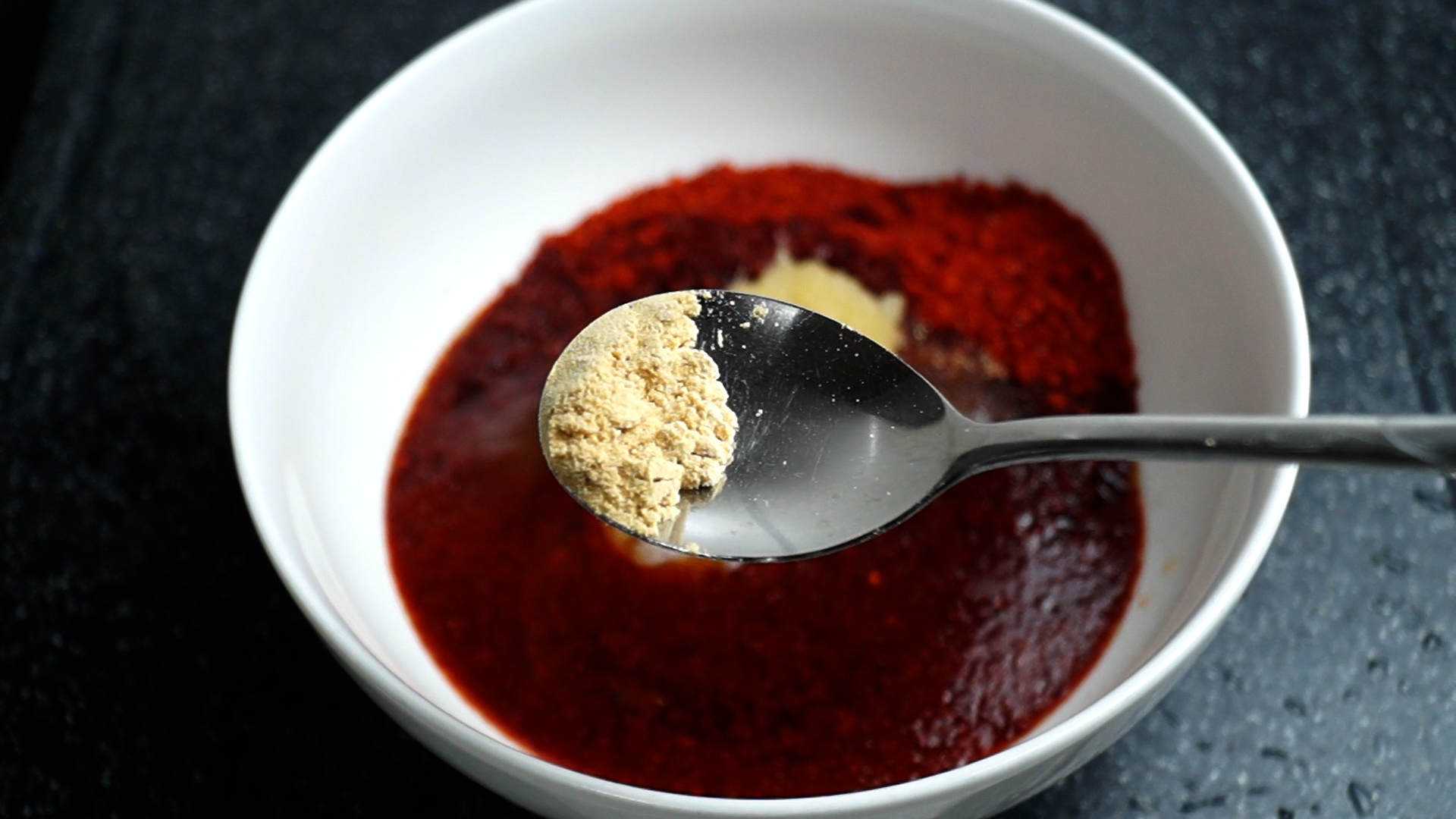 10. 찹쌀풀을 절반만 넣고 양념이 맵거나 양념이 너무 뻑뻑하면 적당량 더 넣어보세요.