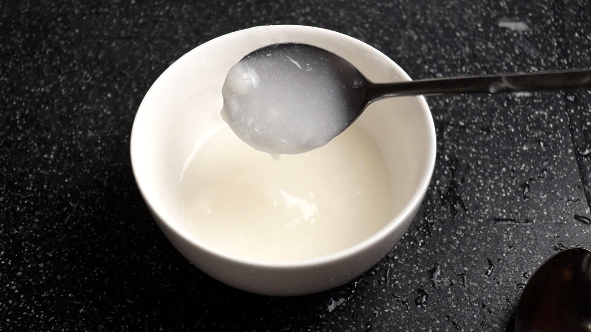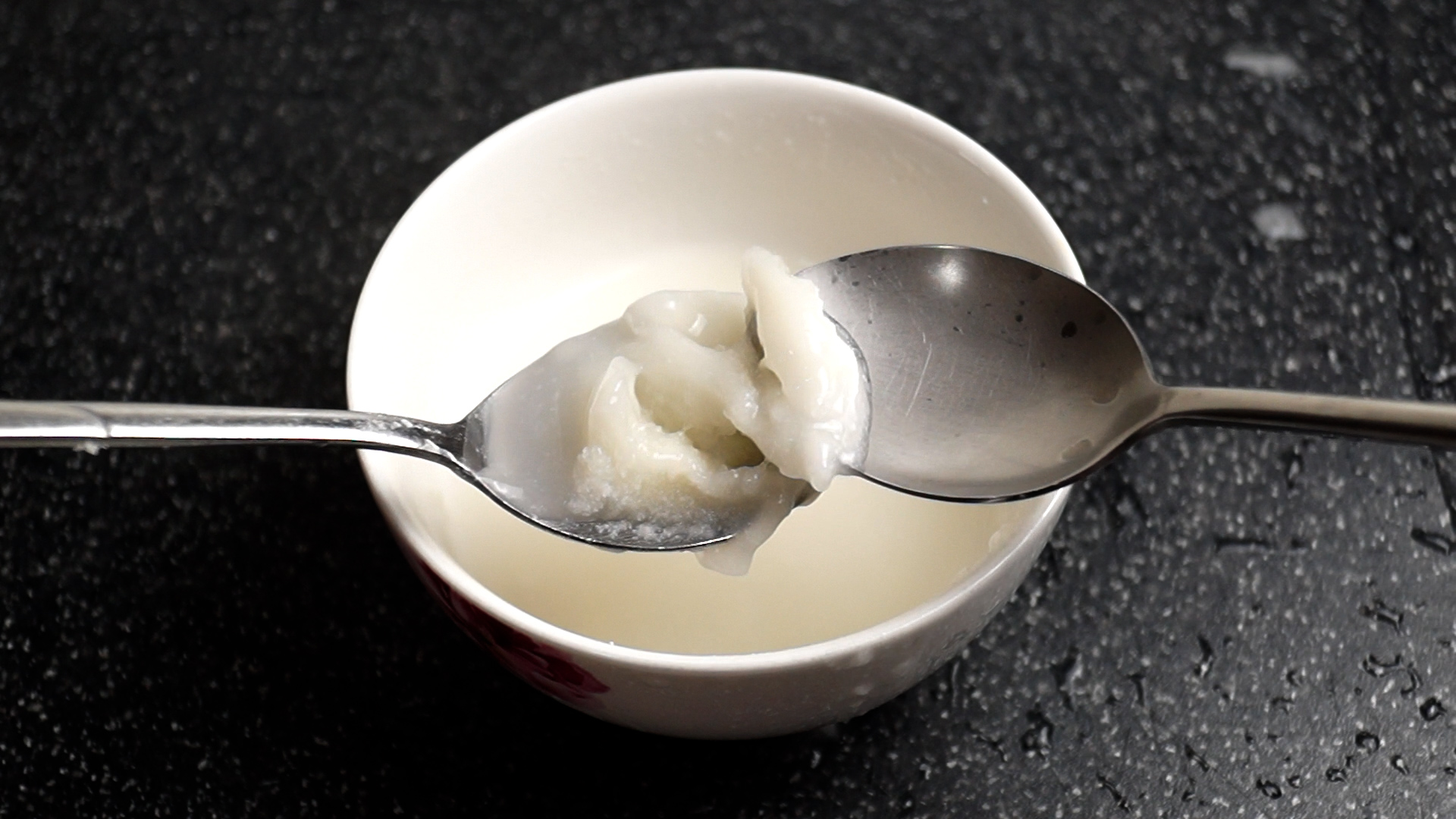 1. 물 100CC 에 찹쌀가루 1큰술을 넣어주세요.