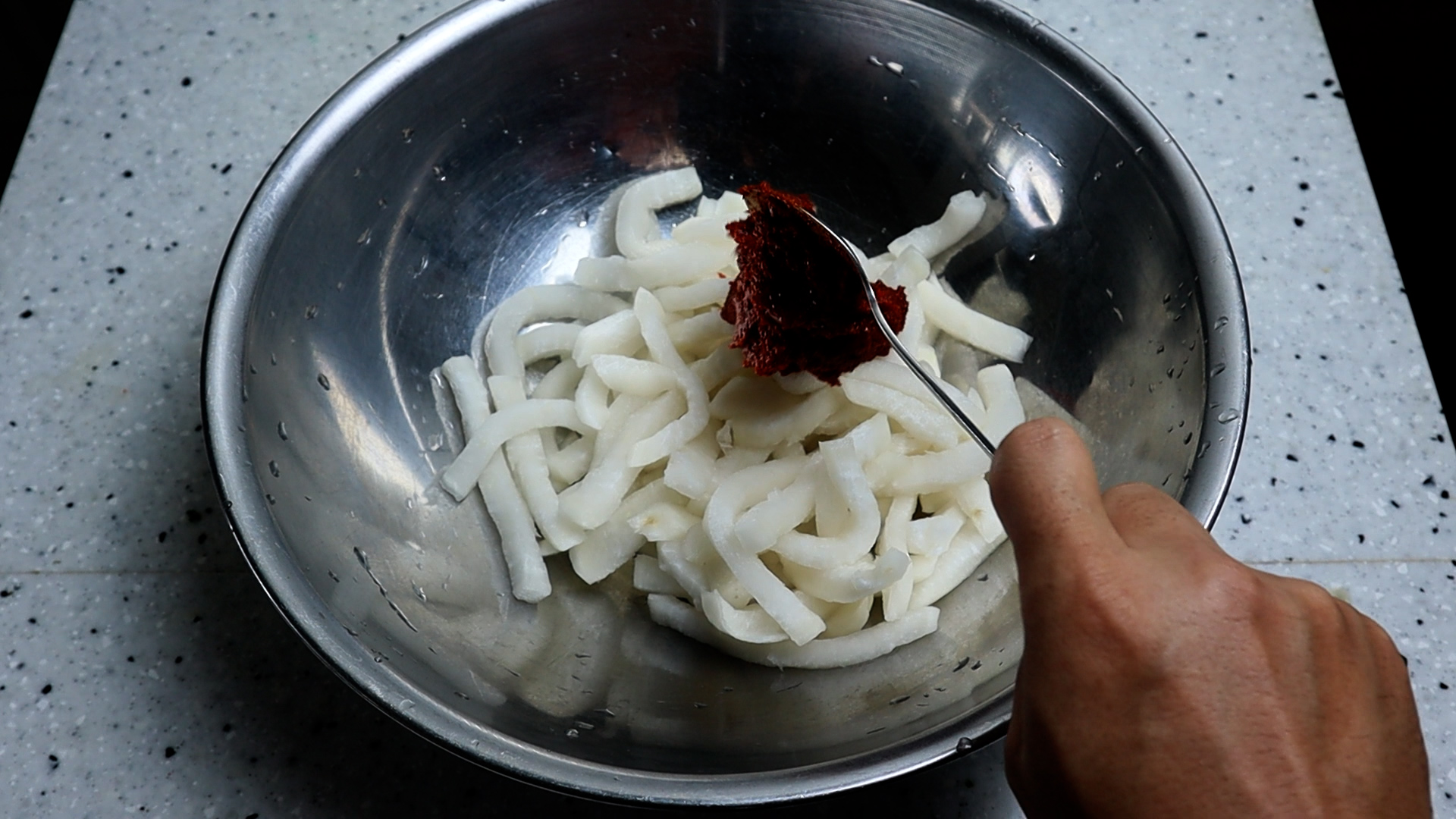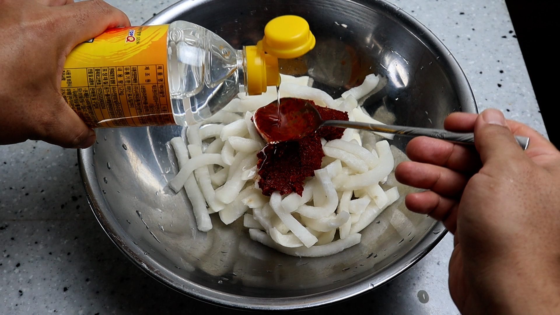 무 1/3통 정도에 양념 크게 퍼서 2큰술