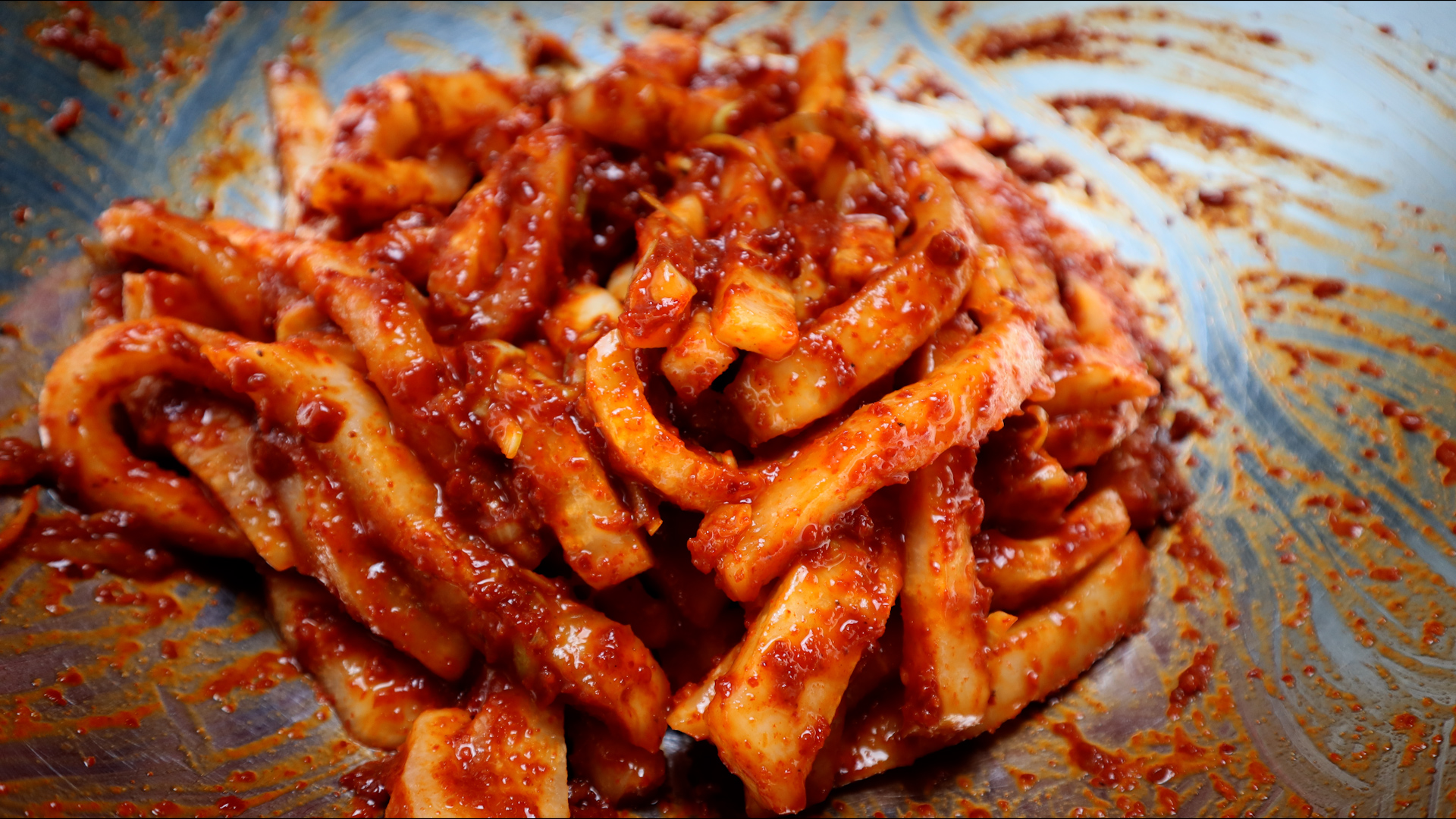 16. 양념을 골고루 섞어서 2~3일 냉장 숙성 시켜주세요. 섞은 다음 너무 뻑뻑하거나 매운맛이 강하면 찹쌀풀을 적당히 더 넣어주시면 좋습니다.