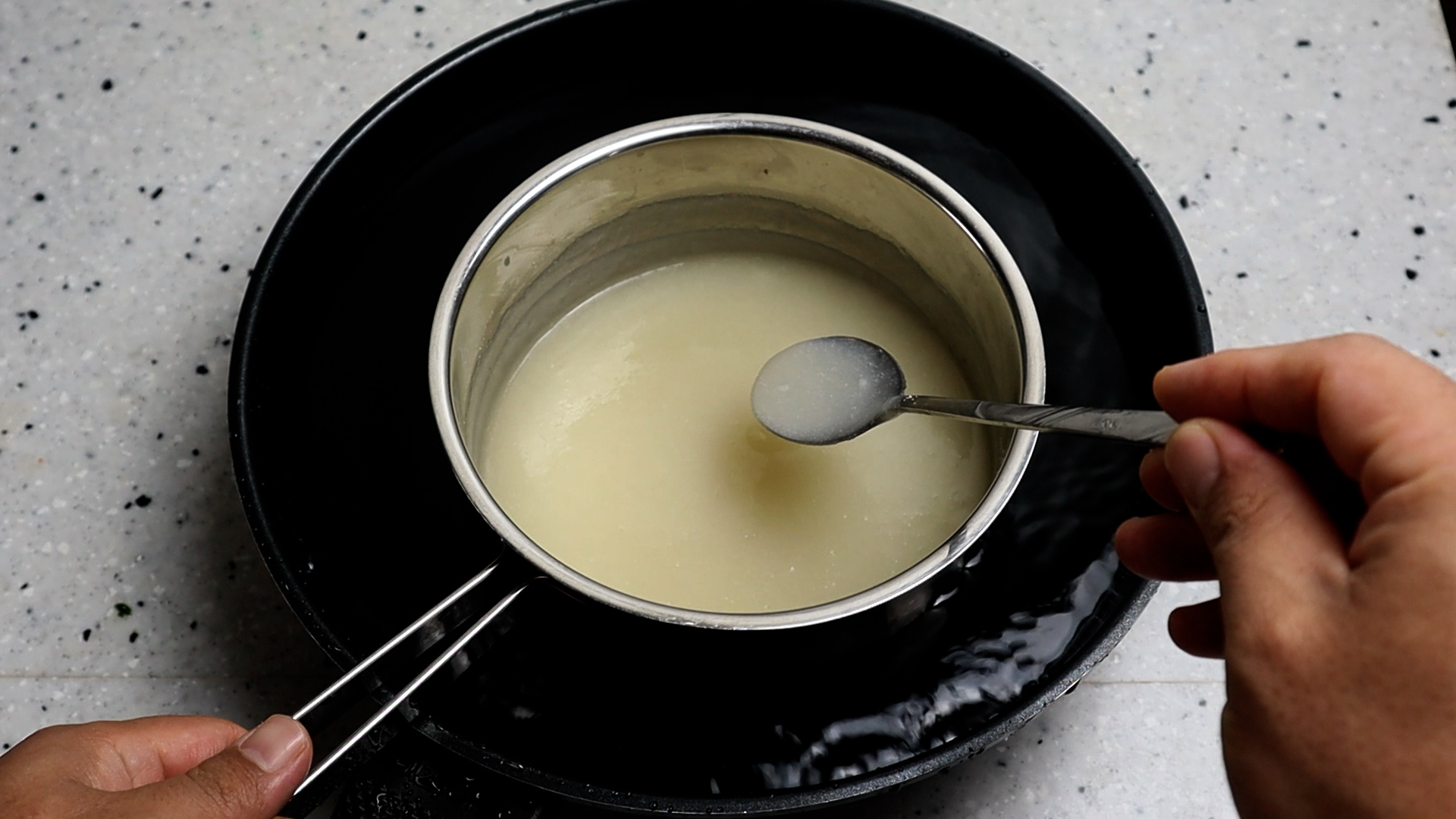 14. 육수를 찬물에 한번 식혀주세요.