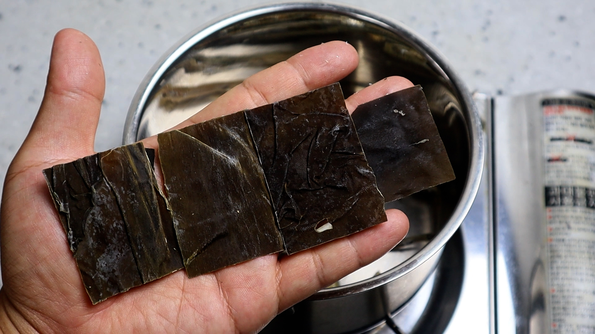 2. 다시마는 손바닥 덮을 정도 크기로 넣어주세요.