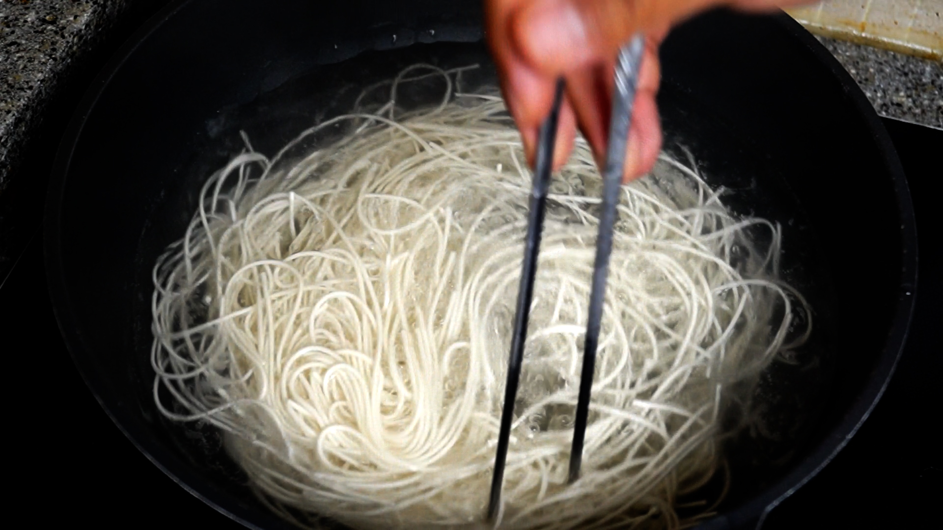 3. 펄펄 끓는물 2리터에 국수 1인분을 삶아주세요. 끓는 물이 넉넉해야 국수가 맛있게 익습니다~ 끓이는 시간을 모르겠으면 소면 3~4분 중명 4~5분 끓여주시면 됩니다.