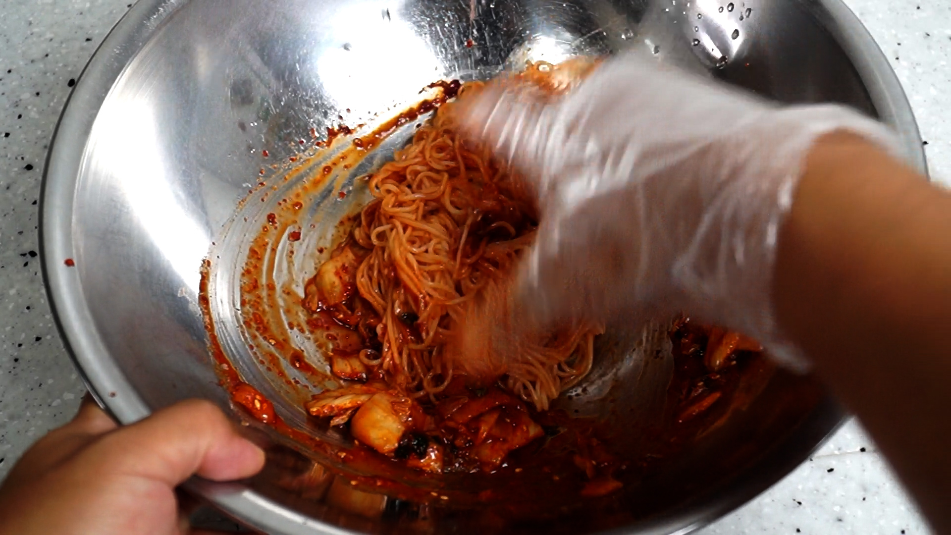 6. 손맛 주의자는 손씻고 위생주의자는 위생장갑을 끼고 버무려주세요. 전 손맛을 믿지만^^ 맨손 거북한분들 계셔서 위생장갑 꼇어요~