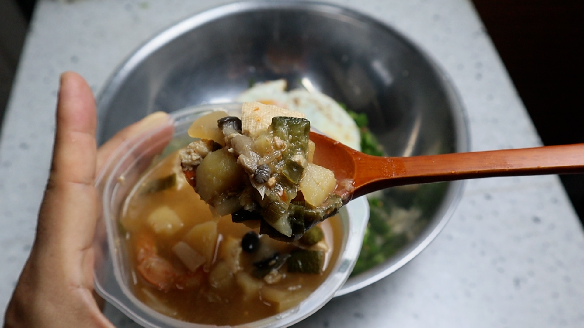 8. 먹다남은 된장,김치,청국장 찌개류에서 국물과 건더기를 듬뿍 퍼서 2~3큰술 넣을거에요.