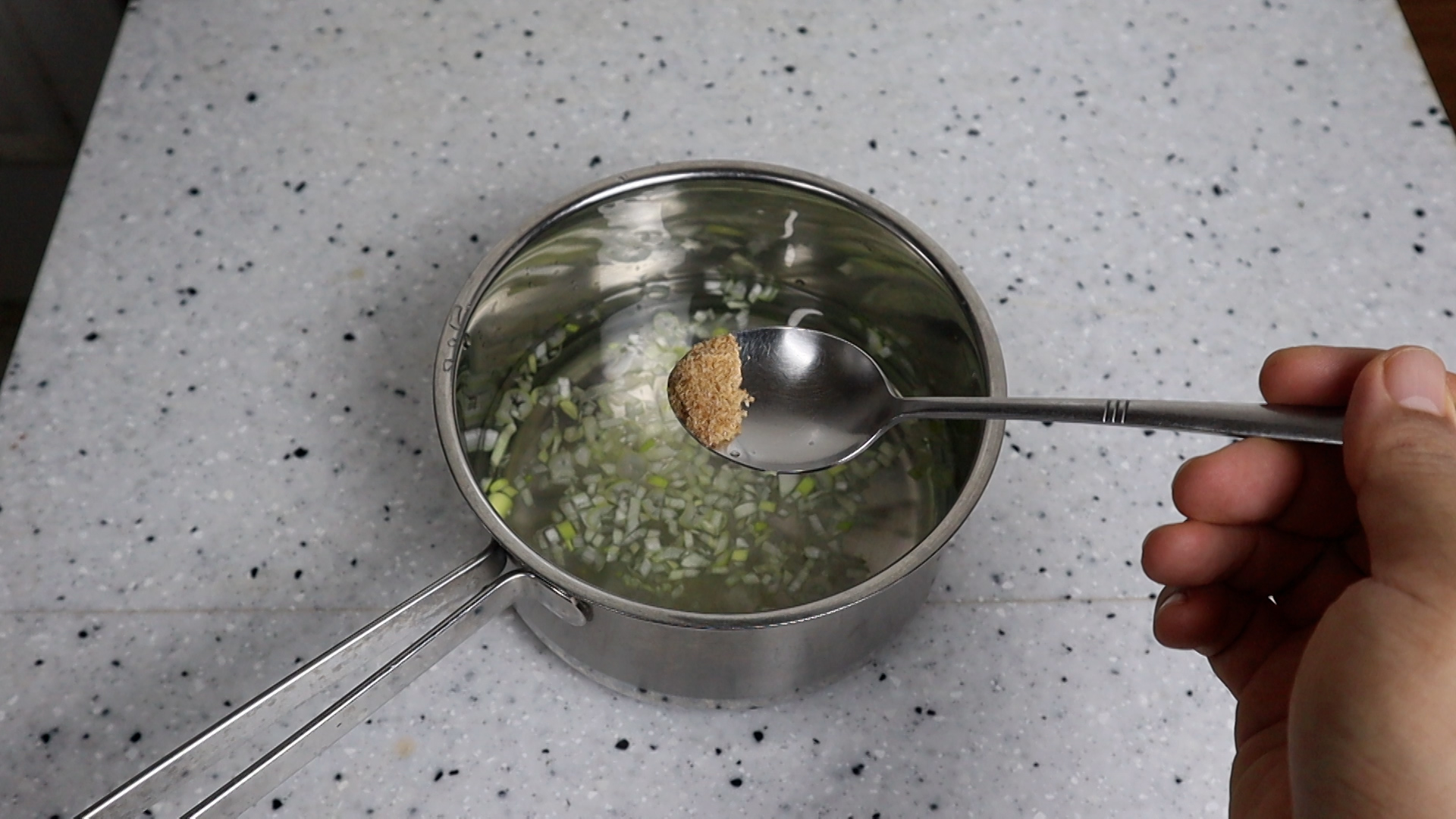 6. 미원을 살짝 넣어주세요. 미원도 멸치 다시마 우린물 사용시 생략 가능합니다.