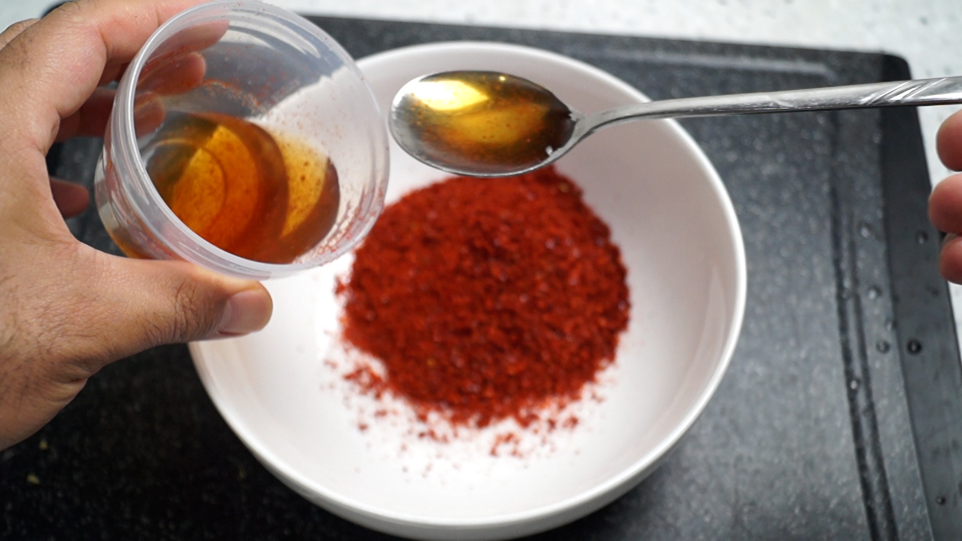 5. 액젓은 고춧가루 부피의 절반!! 밥숟갈로 8스푼 무게로는 64g 입니다~