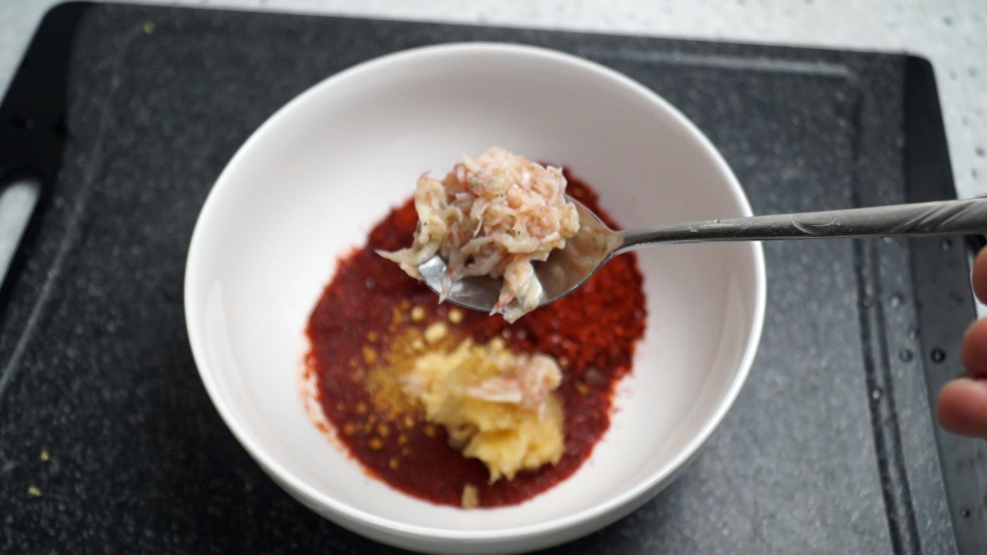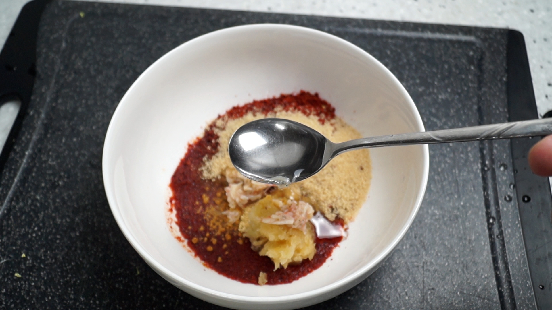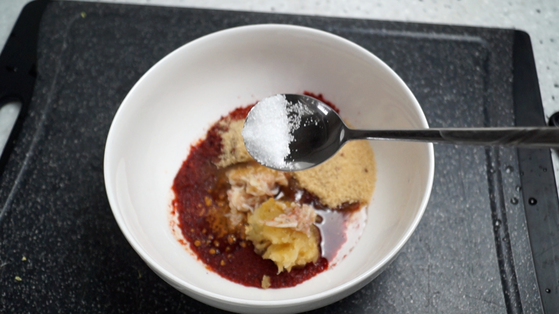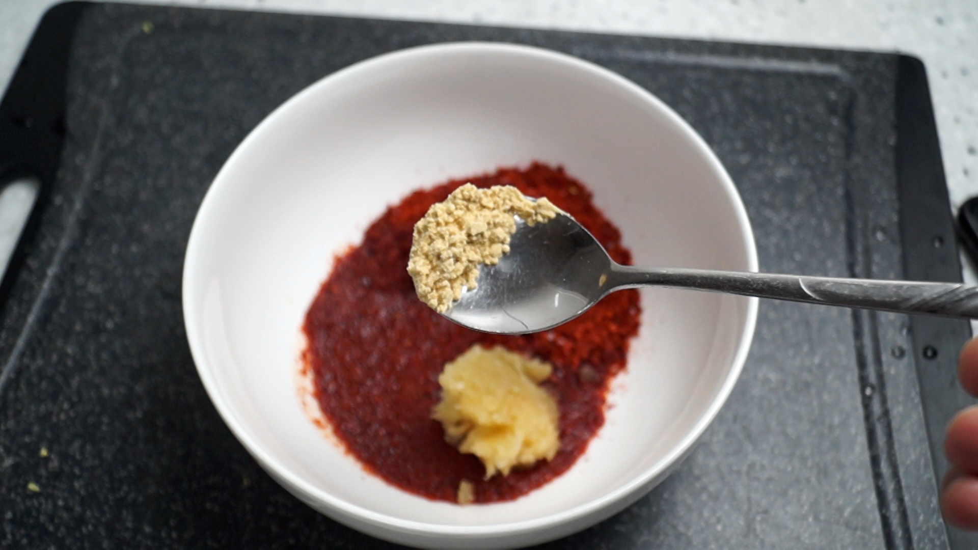7. 생강가루 또는 간생강을 간마늘 부피의 1/3 넣어주세요.