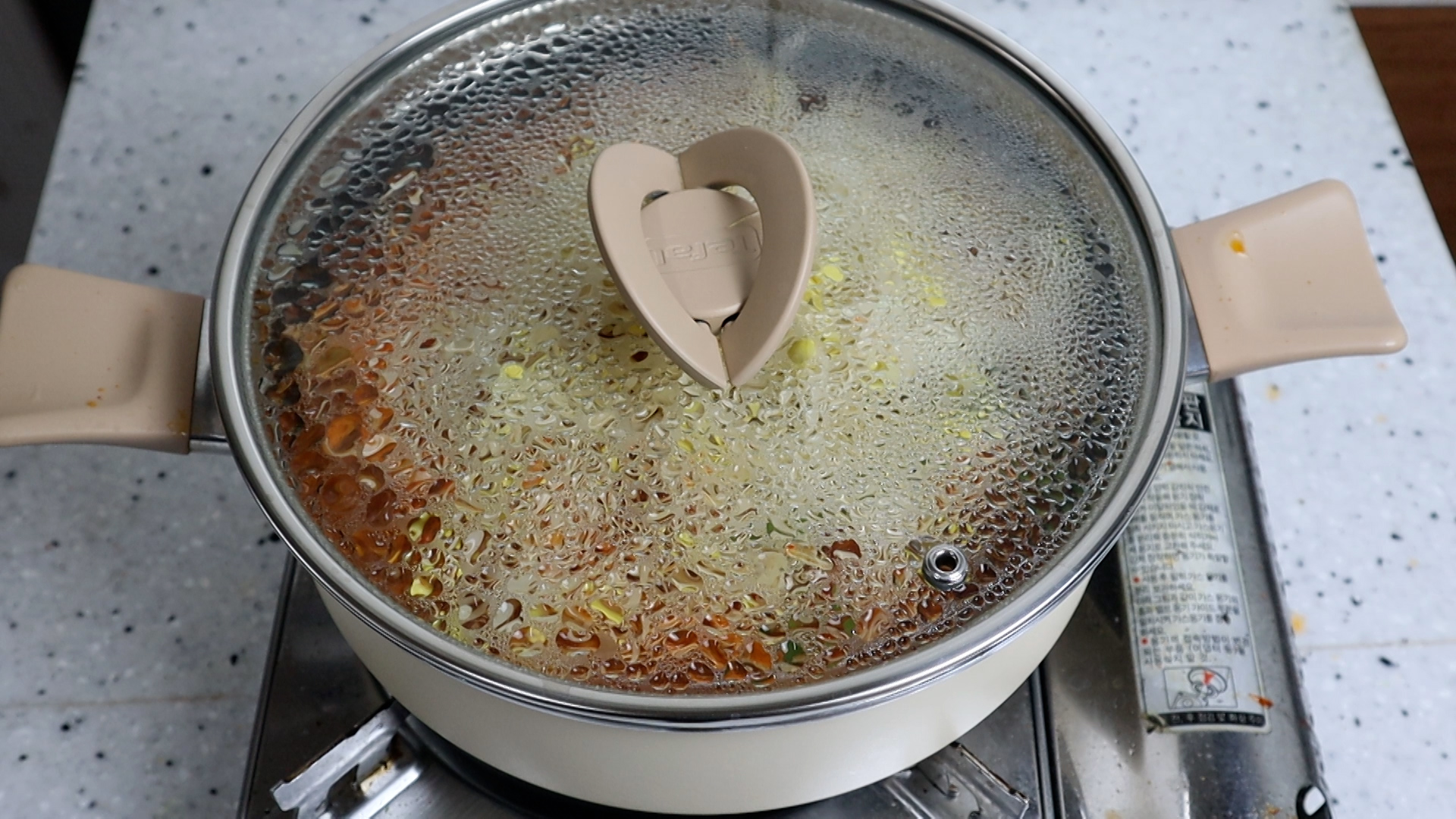 21. 뚜껑을 덮고 바글바글 끓으면 불을 중불로 바꾸고 6분간 그냥 가만히 두세요~