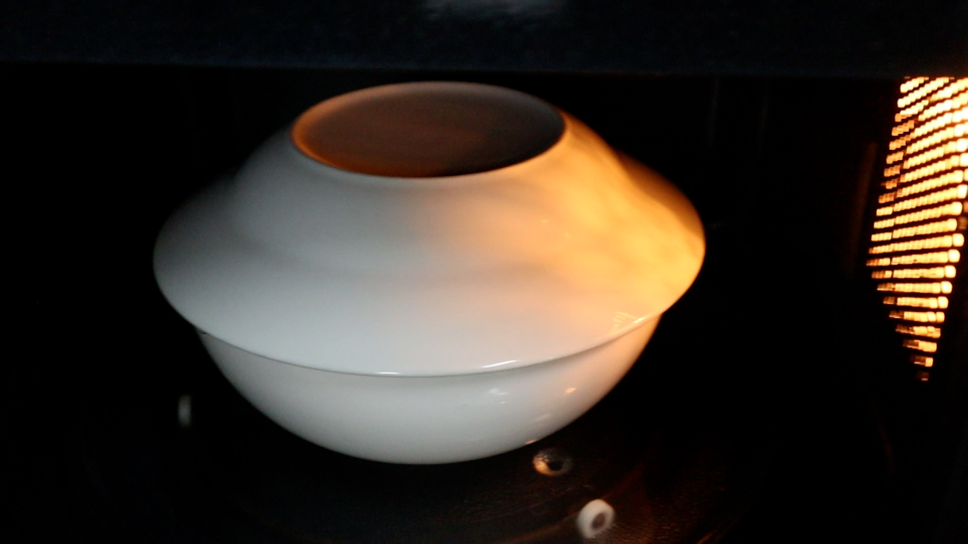 12. 뚜껑을 덮고 다시 전자렌지에 넣고 4분간 돌려주세요. 마찬가지로 출력이 낮은 전자렌지는 4분 30초 정도 돌려주세요.