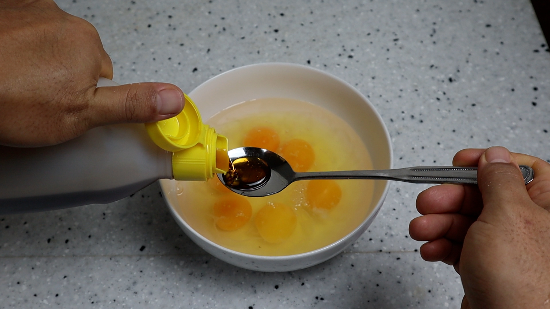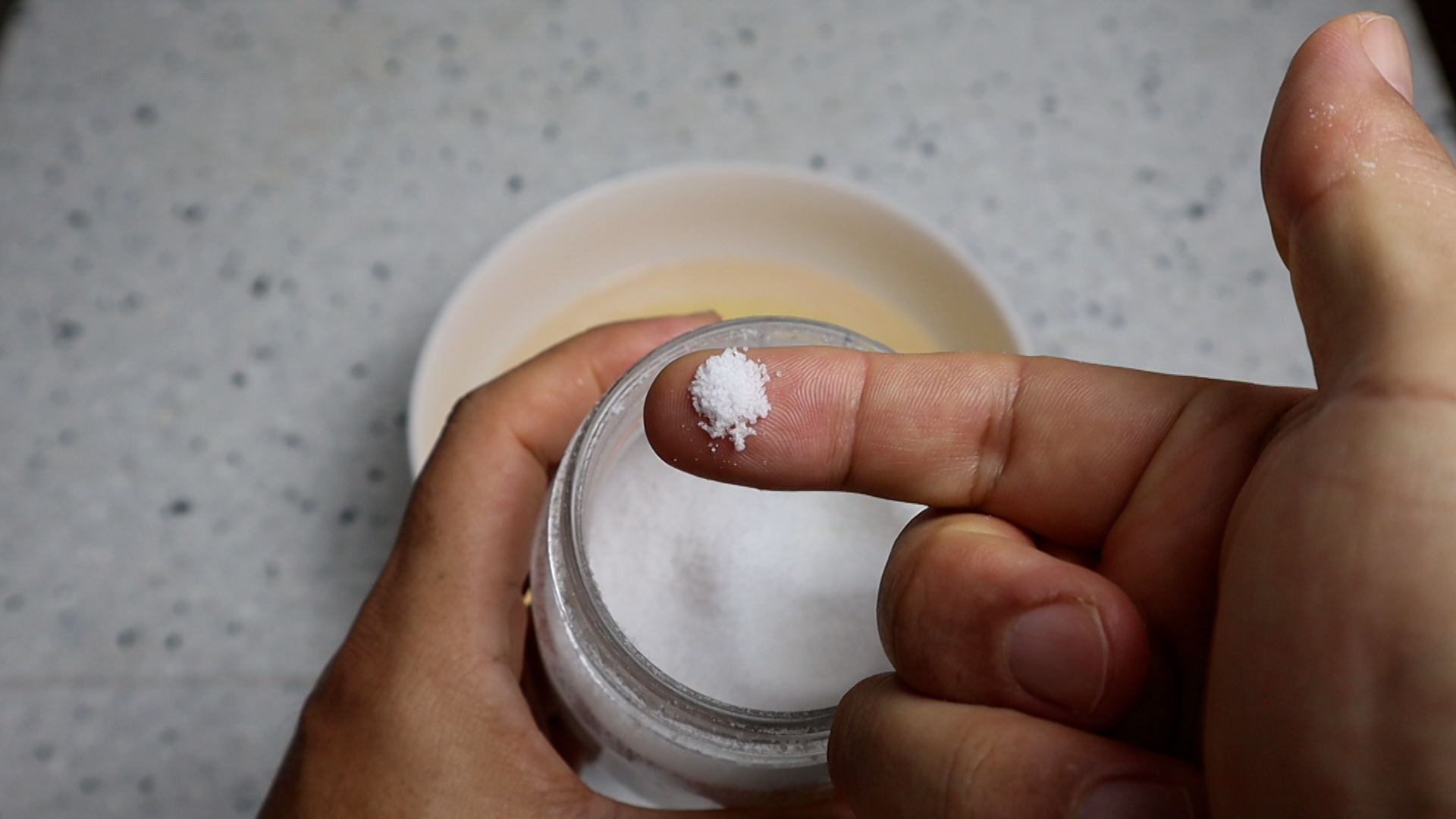 4. 맛소금을 이정도 집어서 3꼬집 넣어주세요. 혹시 계란이 대란 특란이 아니고 왕란처럼 엄청 큰거라면 1꼬집 정도 더 넣어주세요.