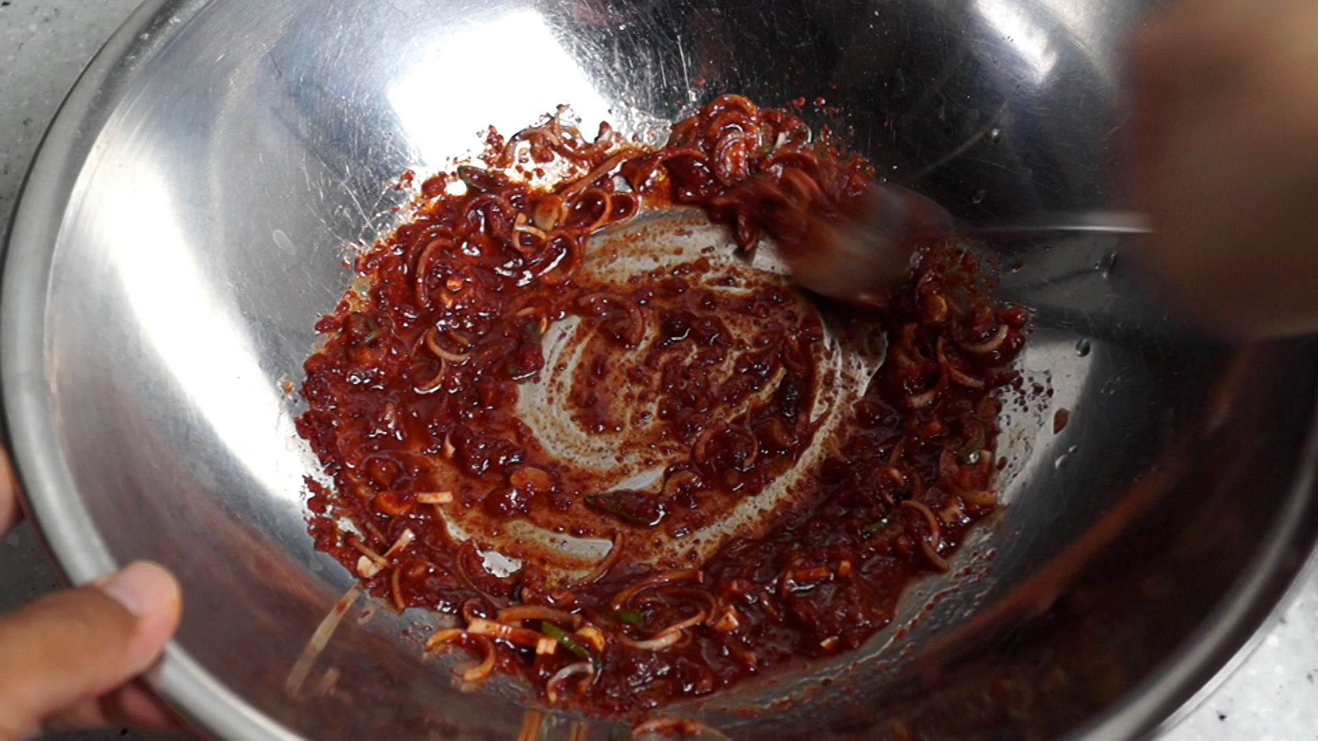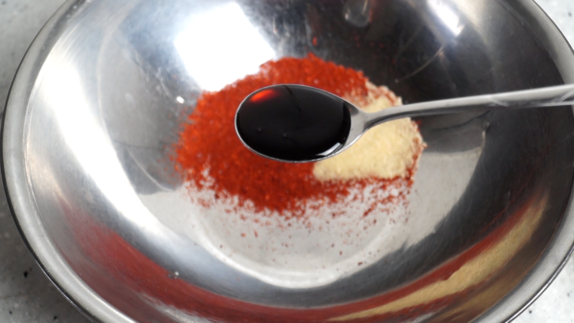 2. 양념란에 재료를 전부 한데 넣어주세요. 고춧가루는 최대한 고운고춧가루를 사용하면 먹을때 입에 거슬거림이 없습니다.
