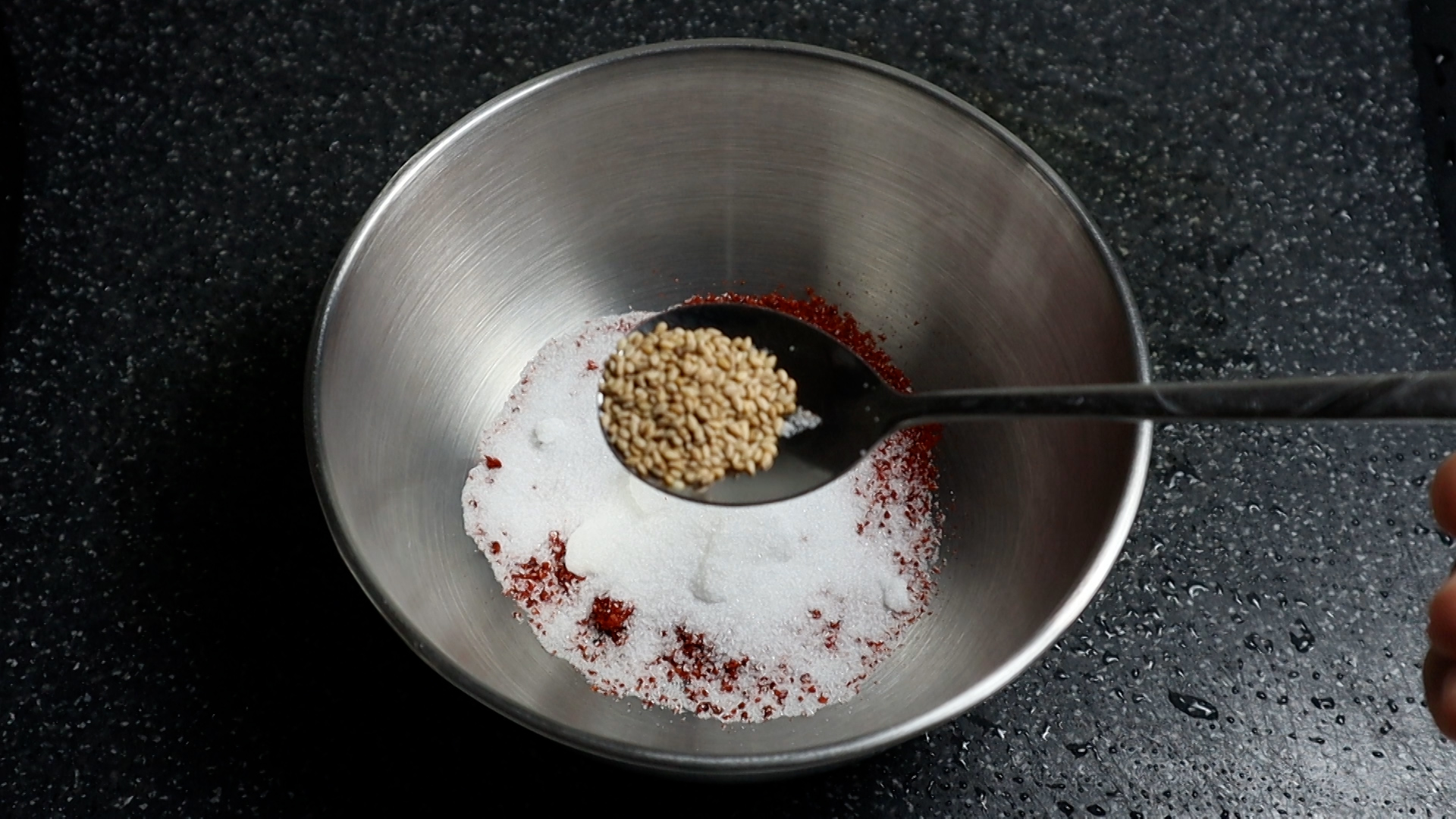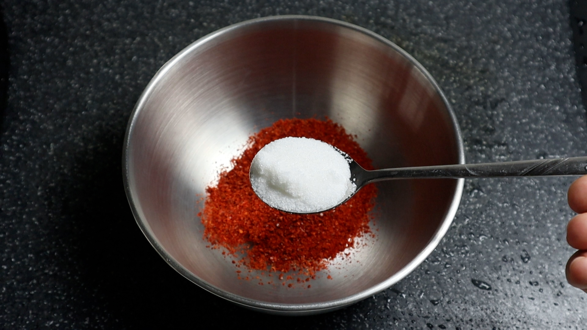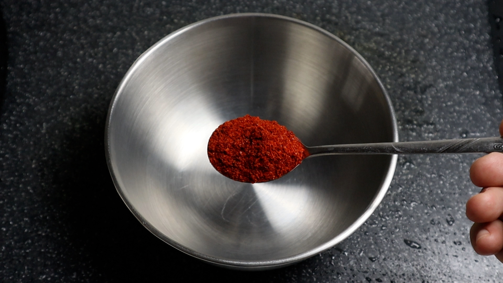 3. 볼에 고춧가루를 넣어주세요. 고춧가루는 중간입자 고춧가루 사용해주세요.