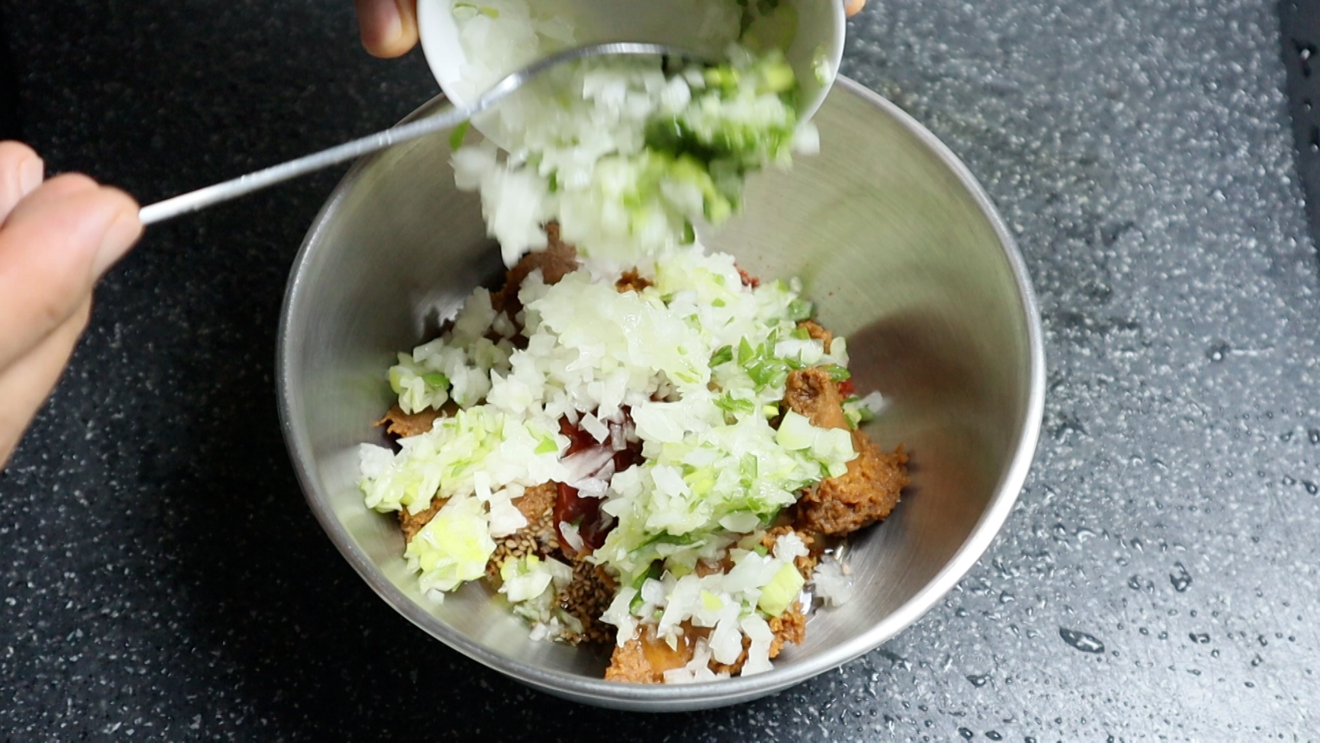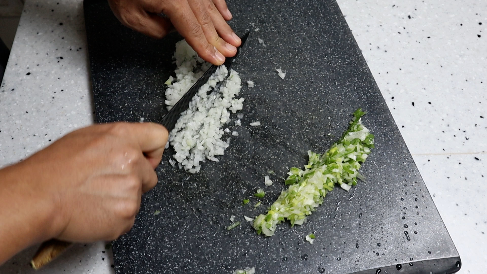 2. 양파도 완전히 잘게잘게 다져주세요.