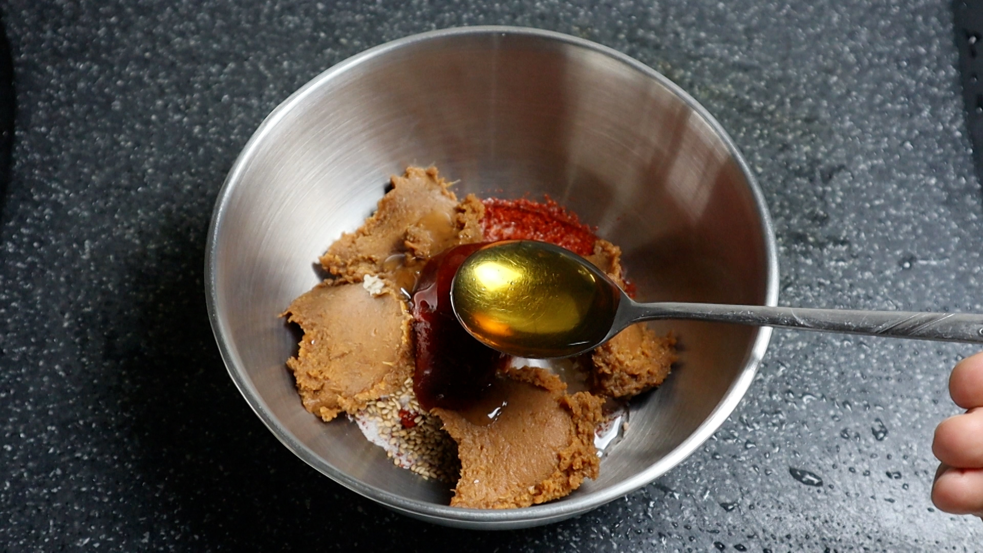 10. 참기름을 넣어주세요. 참기름 대신 마요네즈를 1큰술 넣어주면 또다른 매력의 쌈장을 드실수 있습니다.