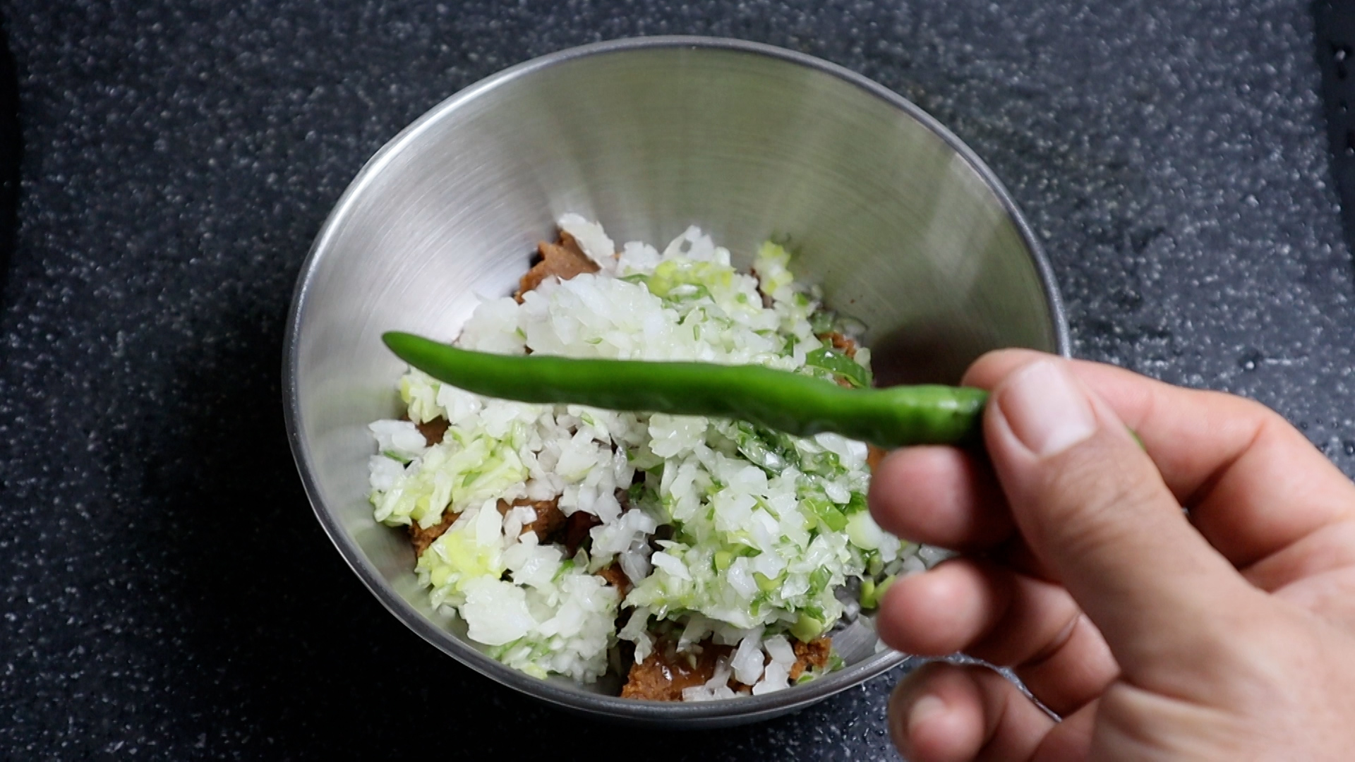 12. 청양고추 1개를 잘게잘게 다져 넣어주세요. 아이들이랑 같이먹을때는 생략하시면 됩니다.