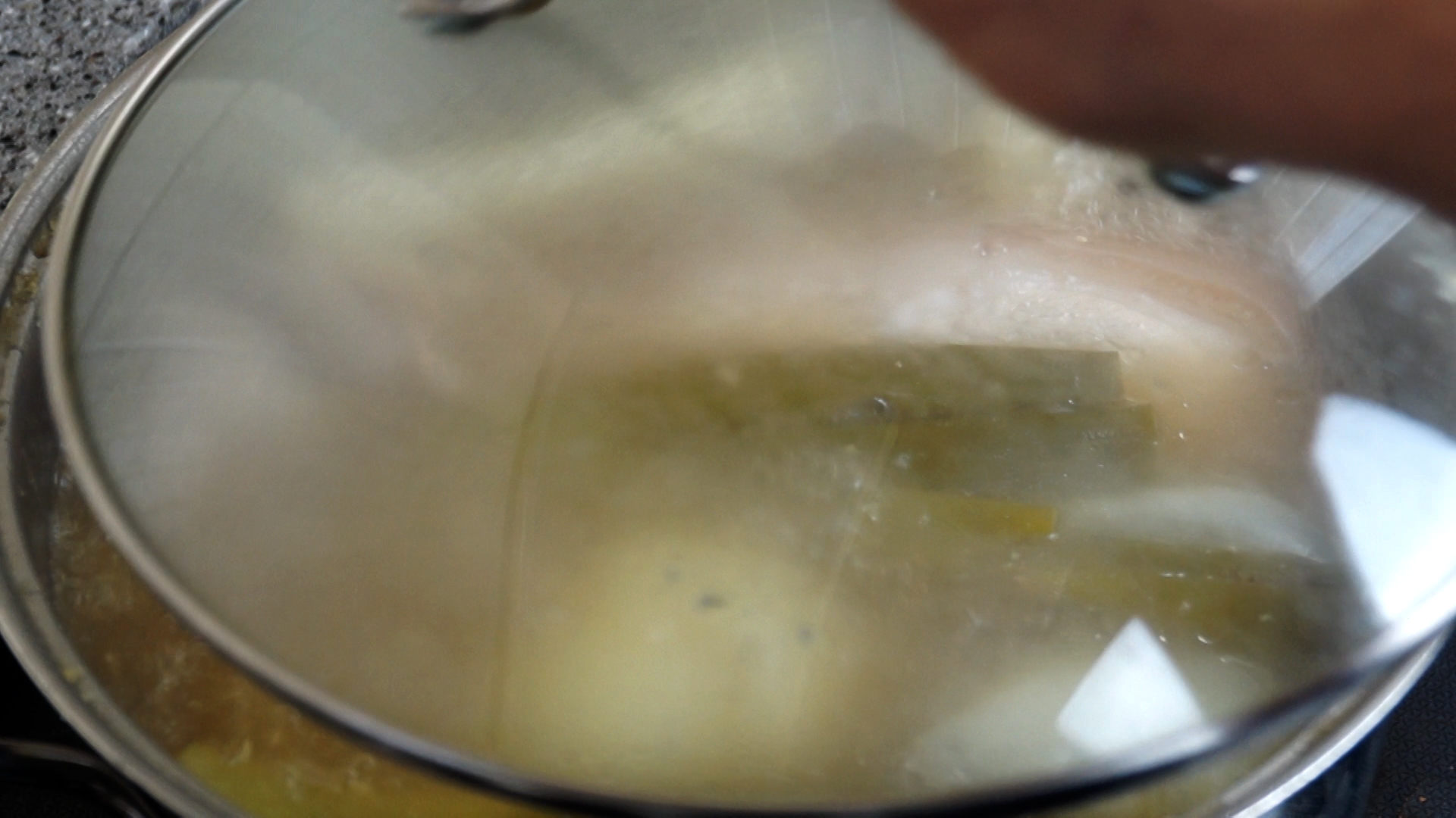 7. 물이 강하게 끓어오르면 불을 중불로 줄이고 뚜껑을 덮고 45분 정도를 삶아주세요. 고기가 두꺼우면 1시간 정도 삶아주세요.